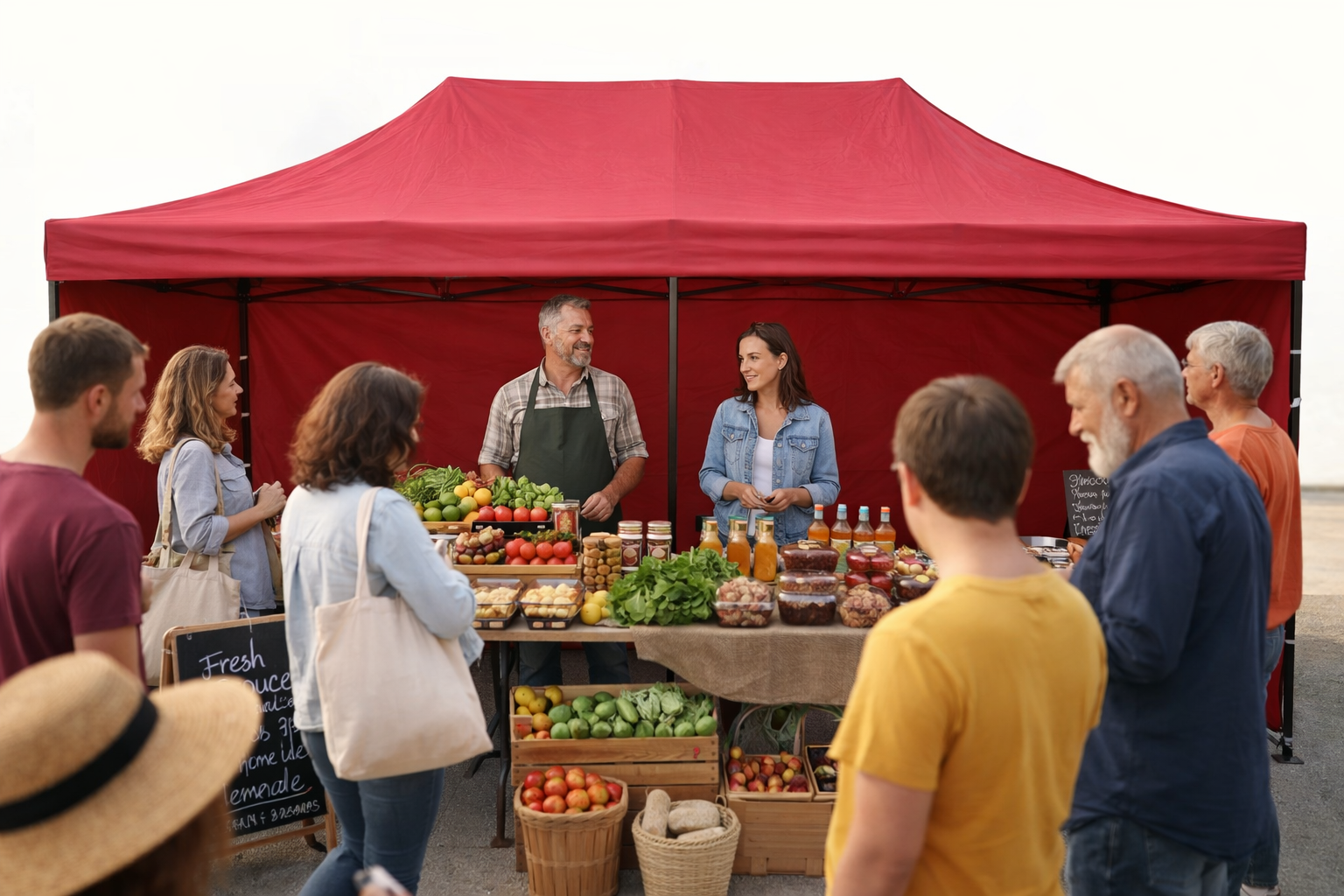 Jiný stánek potřebuje značka, která jezdí na farmářské trhy s jedním stolem a několika bednami zboží. Jiný bude potřebovat prodejce, který vozí větší sortiment, řeší skladovou rezervu uvnitř stánku nebo prodává venku i za horšího počasí. Prodejní stánek je rychloskládací nůžkový přístřešek, který vytváří krytý prostor pro prodej, prezentaci zboží a zázemí obsluhy. V nabídce Tomido jsou zejména modely Aga v několika půdorysech, s bočnicemi i bez nich.
