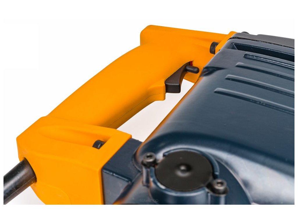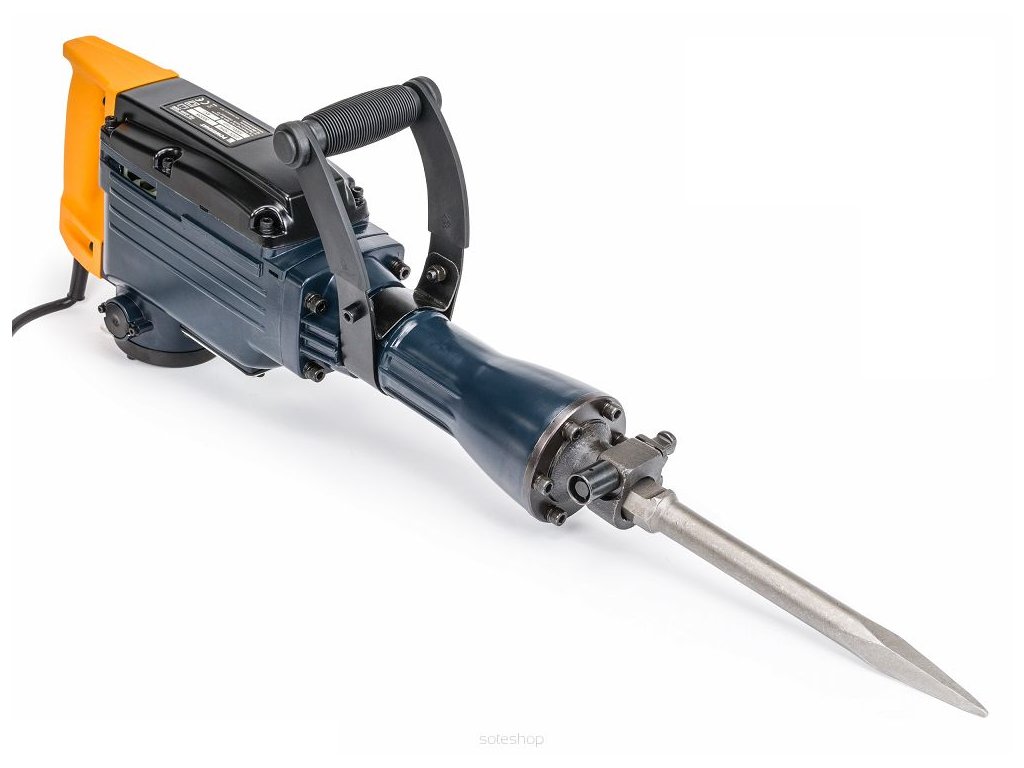 Bourací kladivo je doporučeno pro náročné aplikace - bourací a demoliční práce. Je ideální pro demolici betonu a železobetonu a také sekání do asfaltu. Krátký zdvih pístu s velkým průměrem zajišťuje silný náraz, aniž by přenášel zpětný ráz na uživatele. Spolehlivost zařízení zajišťuje převodovka chlazená olejem. Ergonomický tvar a měkká přední rukojeť zajišťují pohodlnou práci. Kompaktní design pro pohodlí a snížení únavy obsluhy. Zámek spínače pro nepřetržitý provoz. Spolehlivý montážní systém, HEX držák 30mm. Rukojeť typu HEX zajišťuje nejvyšší stupeň odolnosti kovacího příslušenství. Bezpečné upevnění je zaručeno čepovým zámkem použitým v rukojeti, který je důležitý kvůli vysoké rázové síle kladiva. Kufr s prolisy přizpůsobenými zařízení a sadou základního příslušenství. Díky tomu je zařízení při přepravě náležitě chráněno. Díky indikátoru snadno zkontrolujete hladinu oleje v převodovce.