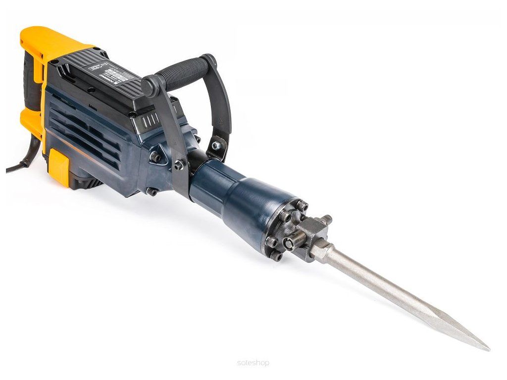 Bourací kladivo je doporučeno pro náročné aplikace - bourací a demoliční práce. Je ideální pro demolici betonu a železobetonu a také sekání do asfaltu. Krátký zdvih pístu s velkým průměrem zajišťuje silný náraz, aniž by přenášel zpětný ráz na uživatele. Spolehlivost zařízení zajišťuje převodovka chlazená olejem. Ergonomický tvar a měkká přední rukojeť zajišťují pohodlnou práci. Kompaktní design pro pohodlí a snížení únavy obsluhy. Zámek spínače pro nepřetržitý provoz. Spolehlivý montážní systém, HEX držák 30mm. Rukojeť typu HEX zajišťuje nejvyšší stupeň odolnosti kovacího příslušenství. Bezpečné upevnění je zaručeno čepovým zámkem použitým v rukojeti, který je důležitý kvůli vysoké rázové síle kladiva. Kufr s prolisy přizpůsobenými zařízení a sadou základního příslušenství. Díky tomu je zařízení při přepravě náležitě chráněno. Díky indikátoru snadno zkontrolujete hladinu oleje v převodovce.