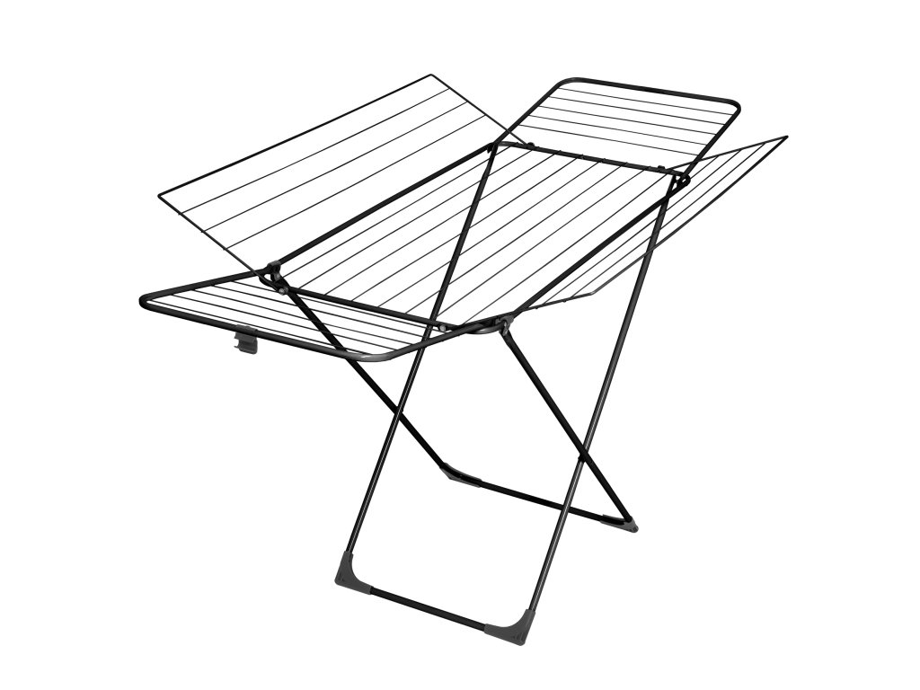 Sušák na prádlo je vyrobený z oceli, lakované černou barvou, je extrémně stabilní a odolný vůči UV záření a vnějším faktorům, proto ho můžete použít i venku. Ocelová konstrukce je opatřena protiskluzovými násadkami. Zjednodušený mechanismus rozkládání nohou a blokáda proti samovolnému složení, zajišťují vysoký komfort používání a mimořádnou snadnost rozkládání. Zámek automatického rozkládání křídel usnadňuje přenášení a skladování složeného sušáku. Sušák je vybaven dvěmi křídly navíc, což zvyšuje jeho užitkovou plochu pro sušení až na 26 metrů.