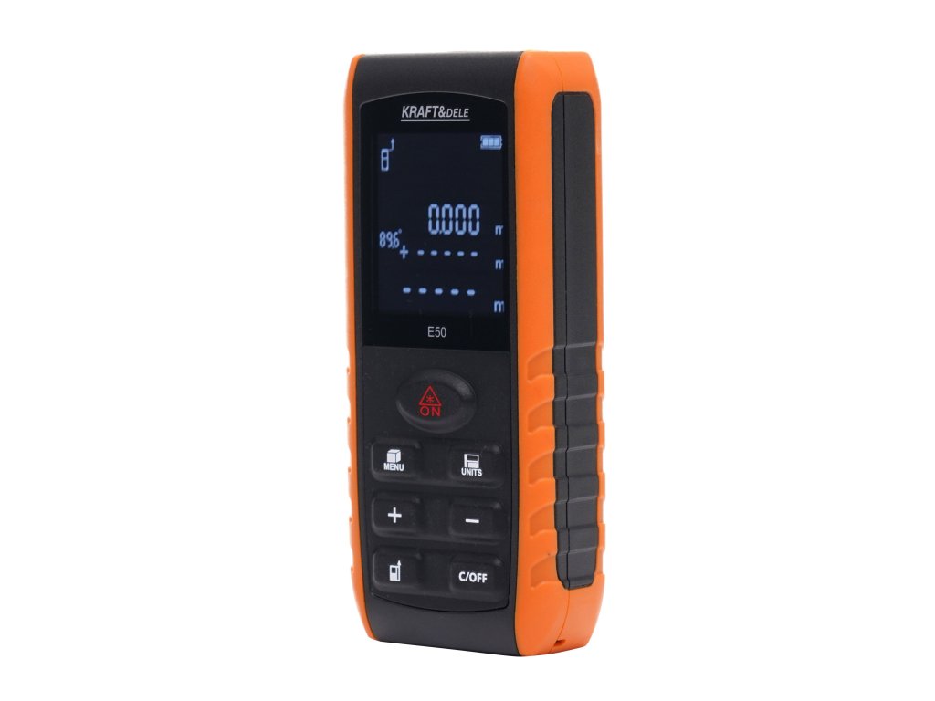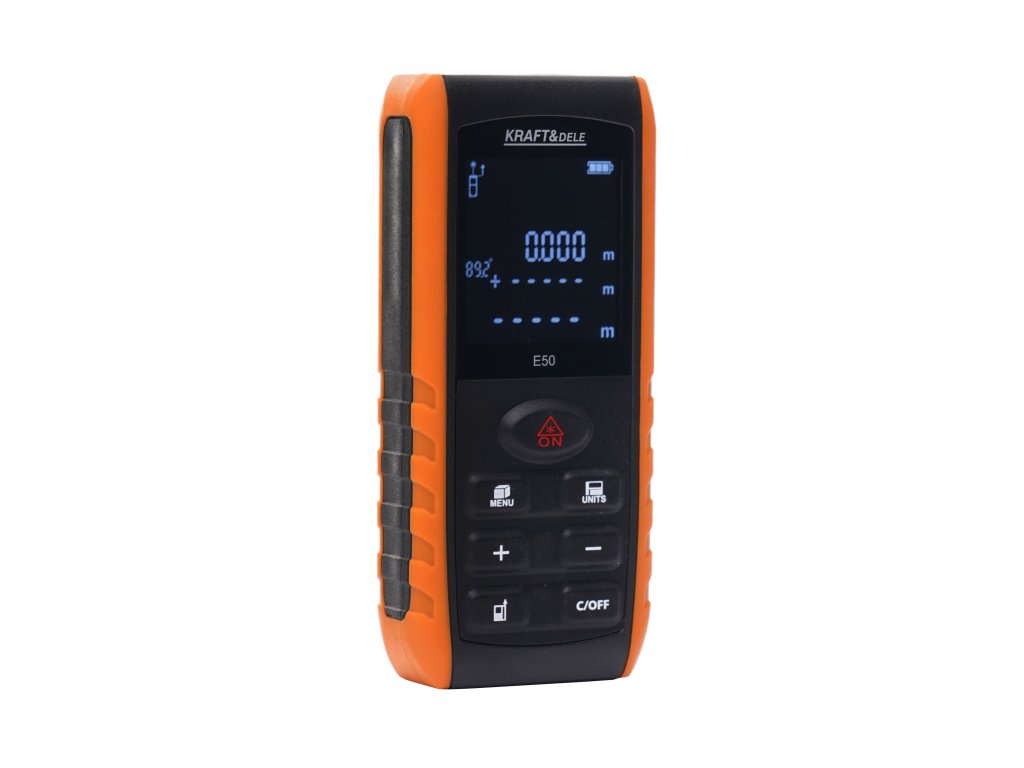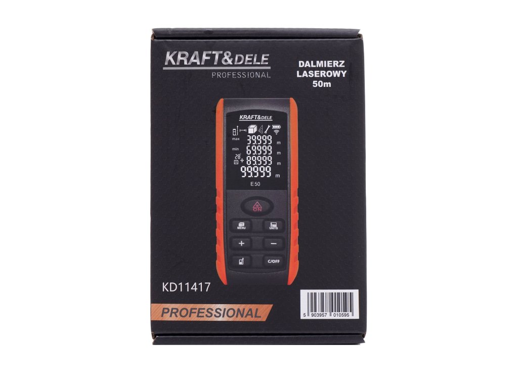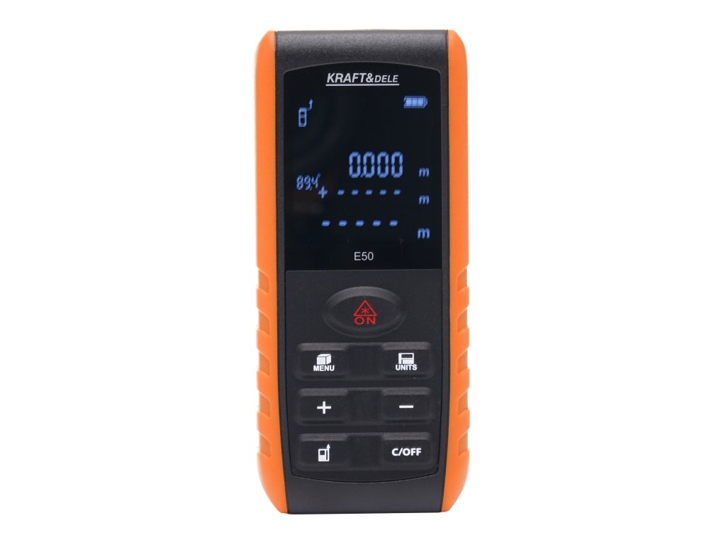dalmierz laserowy; miernik laserowy 50m; laserowy miernik odległości; dalmierz budowlany; miarka laserowa; dalmierz elektroniczny; miernik odległości LCD; KD11417; KRAFT&DELE;