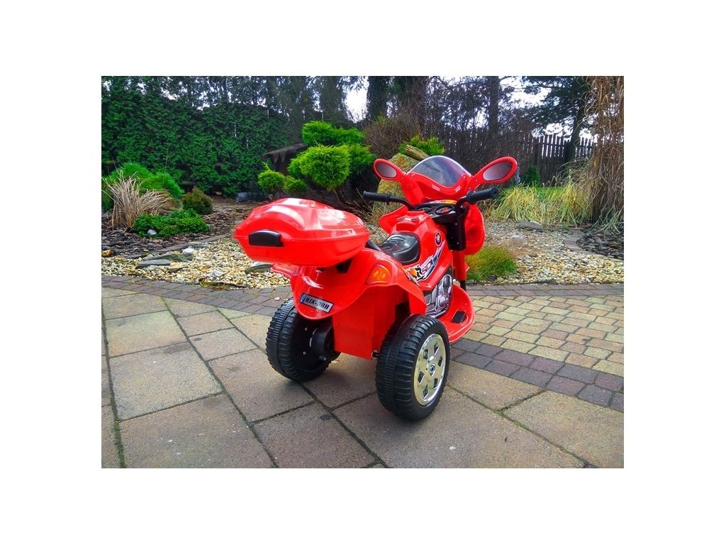Dětská elektrická motorka BJX-088 určitě splní požadavky každého malého řidiče. Motorka má přední světla, plastové kola s gumovým dezénem. Motorka je vybavena klaksonem na volantu a melodiemi. Motorka má v zadní části úložný prostor – kufr. Součástí balení je nabíječka. Sedadlo motorky může být červené barvy.