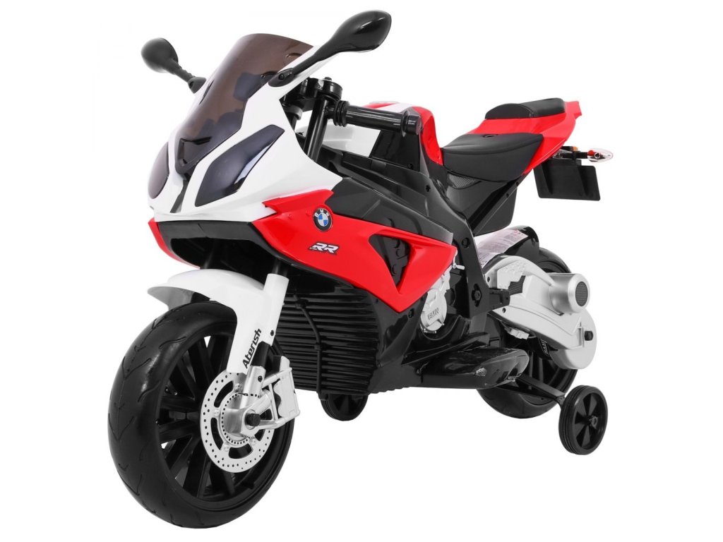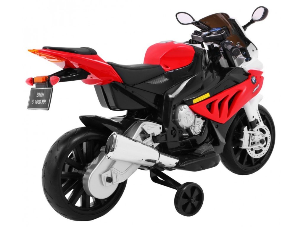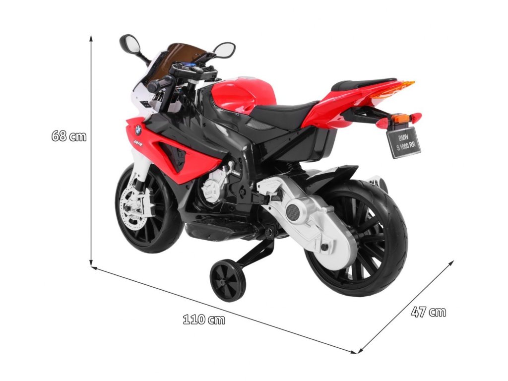 Elektrická minimotorka v licenci BMW. Jízdu na této senzační motorce si zamiluje každý malý závodník či závodnice. Nosná kovová konstrukce, kvalita materiálů a výkon dělají z BMW S1000 RR absolutní jedničku dětských sportovních motorek. BMW S1000 RR je vybavená dvěma výkonnými elektrickými motory, díky čemuž získává oboustranný náhon zadního kola. Ostřílení motorkáři si tak mohou troufnout i na maximální rychlost 5 km/h. Snadné ovládání - při stlačení nožního pedálu na stupátku se vozítko rozjede, při uvolnění pedálu samo zabrzdí. Pomocí přepínače na řídítkách se volí pomalá/rychlá jízda. Pro ty nejmenší řidiče je možné vyměnit stojánek za dvě balanční kolečka. Ve výbavě jsou dále svítící přední světla, vlastní klíček pro startování a řada zvukových efektů jako klakson, zvuk motoru a startování, zabudované písničky a melodie. Kola jsou vyrobená z měkčeného EVA plastu - jízda po pevném povrchu je tak značně pohodlnější a tišší. Jelikož se jedná o rozměrné zboží, jsou vozítka dodávána v rozloženém stavu. Sestavení motorky není ale vůbec nic obtížného a zvládne jej každý. K sestavení Vám pomůže detailní foto návod v češtině, ve kterém je krok za krokem popsáno jak postupovat.