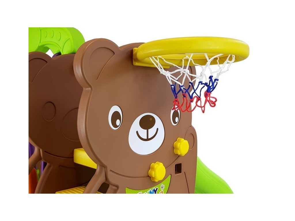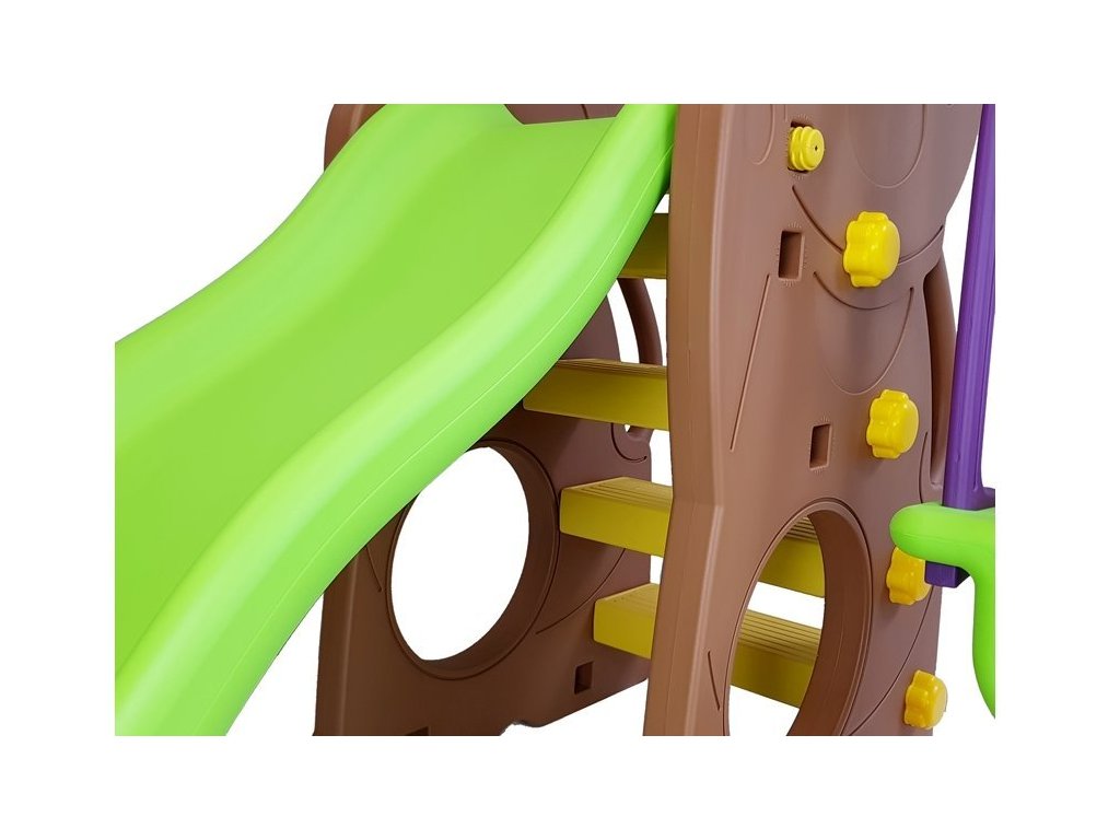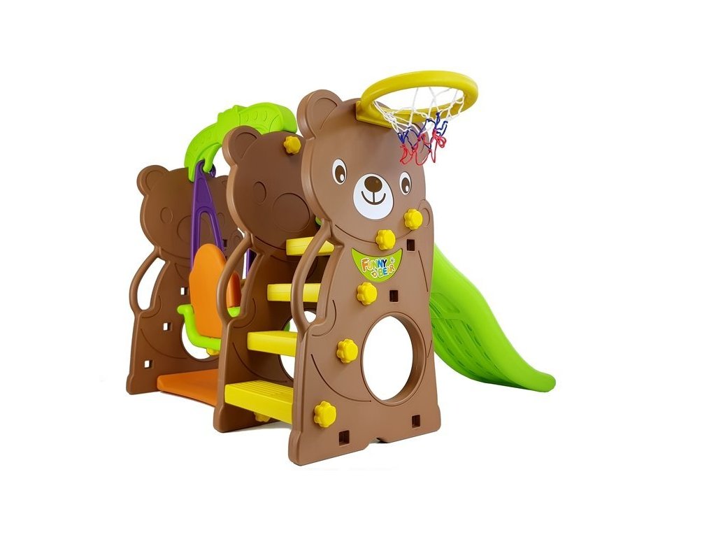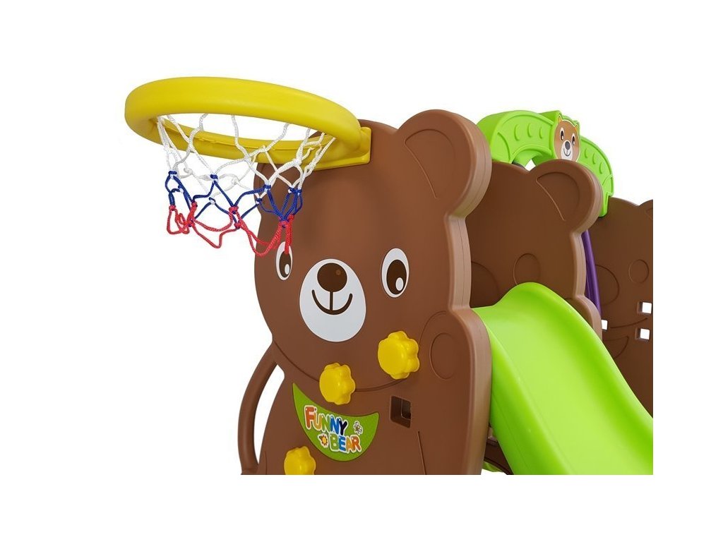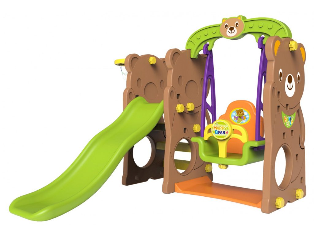 Sestava se skládá z houpačky, skluzavky a basketbalového koše. Tím že tento set kombinuje několik prvků dohromady, můžete poskytnout Vašim dětem spousty zábavy. Sestava lze složit dvěma způsoby, s košem po pravé nebo po levé straně. Skluzavku lze polohovat v závislosti na věku dítěte. Sestava je vhodná do interiéru i na zahradu.