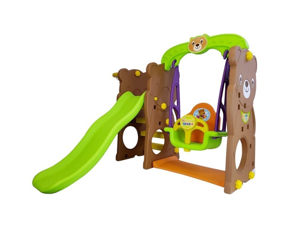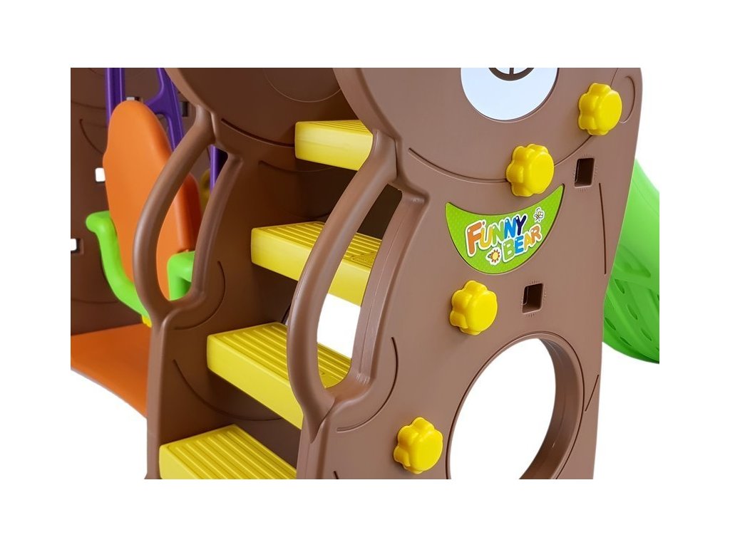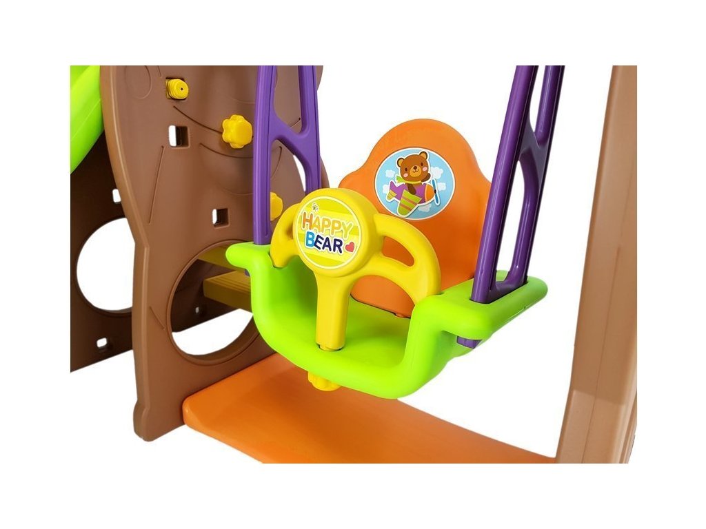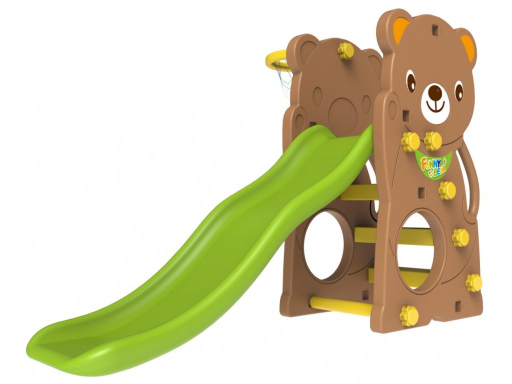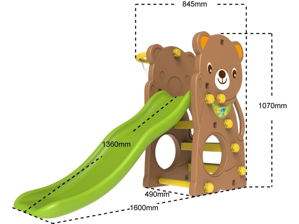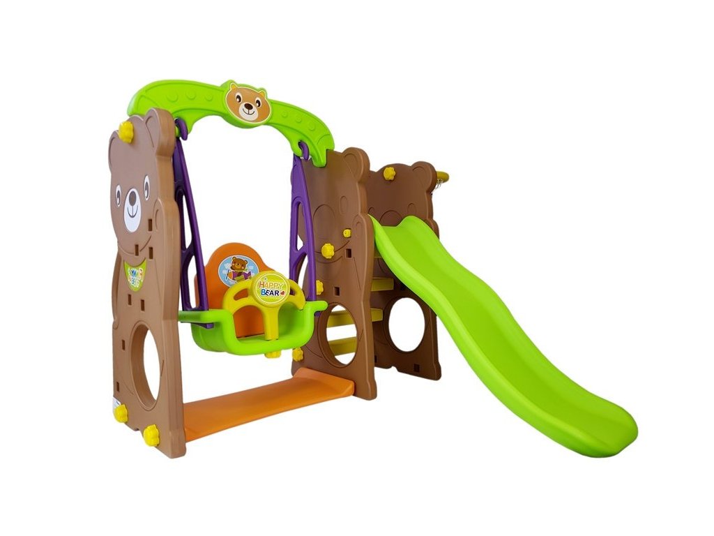 Sestava se skládá z houpačky, skluzavky a basketbalového koše. Tím že tento set kombinuje několik prvků dohromady, můžete poskytnout Vašim dětem spousty zábavy. Sestava lze složit dvěma způsoby, s košem po pravé nebo po levé straně. Skluzavku lze polohovat v závislosti na věku dítěte. Sestava je vhodná do interiéru i na zahradu.