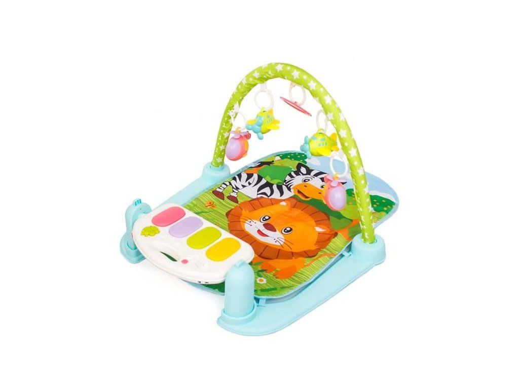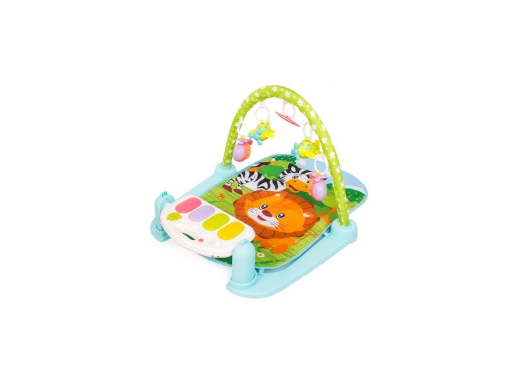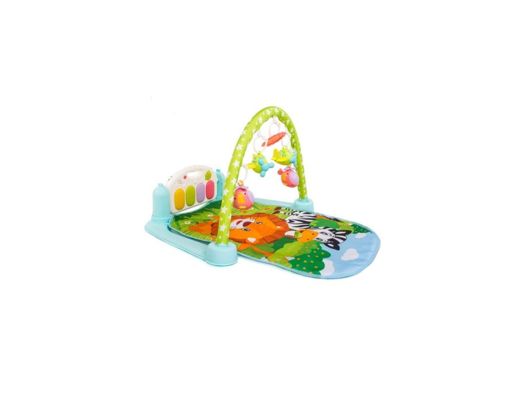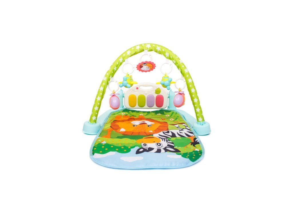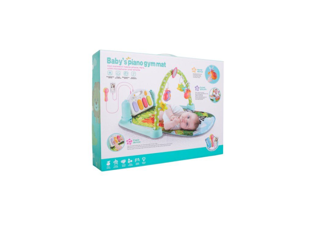 Dětská hrací podložka 2v1. Interaktivní vzdělávací podložka s klavírem, která roste s dítětem. Můžete se bavit různými způsoby. Podložka má hrazdu se 4 zavěšenými hračkami a zrcadlo. Podložka byla navržena tak, aby napomáhala fyzickému a motorickému vývoji dítěte od prvních okamžiků života. Byla navržena podle nejvyšších standardů v souladu se směrnicemi platnými v Evropské unii. Má všechny certifikáty, které umožňují použití podložky kojenci. Když dítě samo sedí, má podložka funkci hracího klavíru, který se snadno přeměni an interaktivní hudební stůl. Sada obsahuje hračkový mikrofon a kabel pro připojení telefonu nebo přehrávače MP3, pomocí kterého můžete hrát oblíbené ukolébavky nebo pohádky Vašeho dítěte. Ovládá se pomocí dálkového ovládání poskytuje pohodlný a rychlý způsob ovládání.
