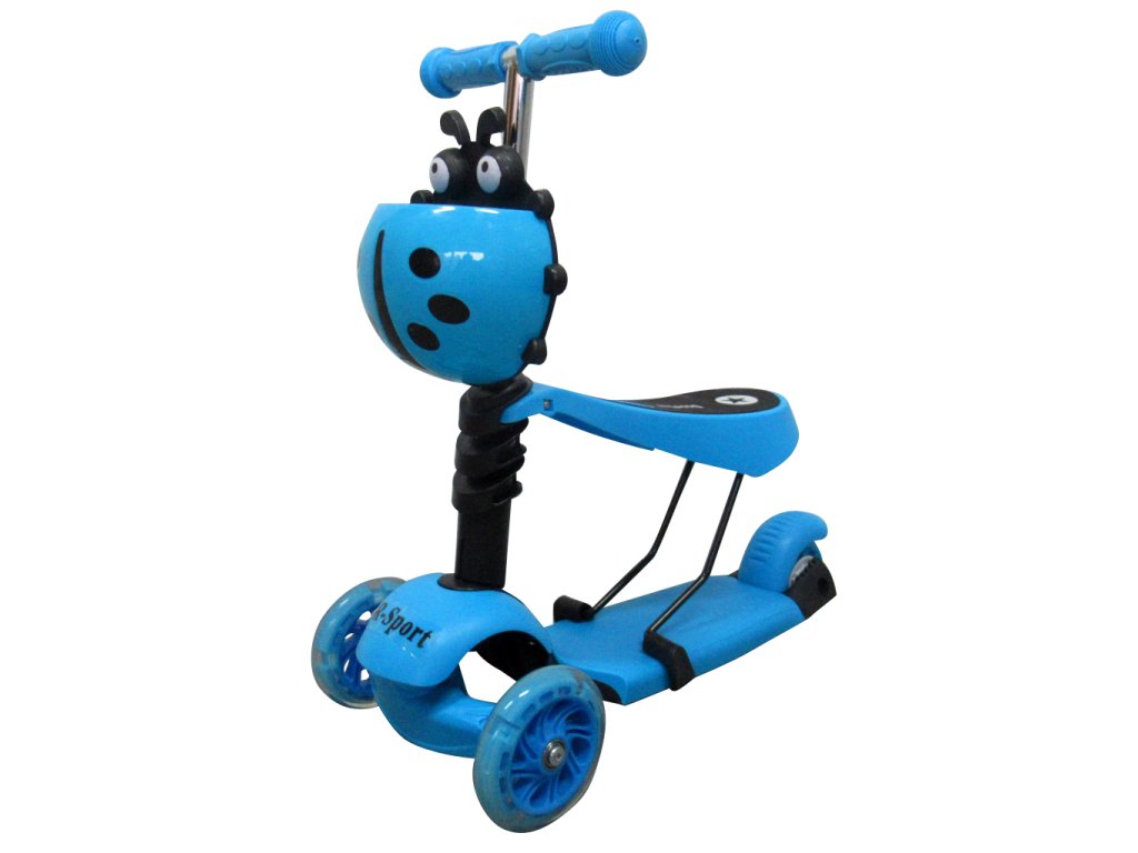 Dětská tříkolová koloběžka H3 značky R-Sport. Dětská tříkolová koloběžka má brzdu, LED blikající gumová kola, nastavitelná řídítka, tyč pro rodiče (vodící tyč), odnímatelnou nádobku na drobnosti ve tvaru berušky a sedadlo. Doporučený věk pro tuto tříkolku je 2-4 roky s připevněnou tyčí pro rodiče a 2-7 let jako tříkolová koloběžka. Tříkolová koloběžka může být použita s vodící tyčí pro rodiče, jako odrážedlo nebo jako koloběžka. Koloběžka má LED osvětlená gumová kola, která svítí za jízdy. Tříkolová koloběžka - dvě kola vpředu a jedno vzadu. Stabilitu koloběžky zajišťují dvě přední kola a díky blatníku na zadním kole dítě brzdí. Dítě řídí balanční koloběžku - to znamená, že používá tělo a řídítka a současně se odráží nohou. Když je použito jako odrážedlo, dítě se posadí a odráží se nohama. Když je připevněna vodící tyč, slouží koloběžka jako "kočárek", dítě se nechává vozit. Protiskluzová rukojeti a protiskluzové prvky na desce - bezpečný design koloběžky zajišťuje bezpečné a stabilní používání koloběžky. Blatník nad zadním kolem je brzda, stisknutím se koloběžka zastaví. Světelná gumová kola - LED světla zabudovaná do předních kol, které svítí během jízdy. 5v1, to znamená: Koloběžka s ozdobným košíkem, sedadlem, opěradlem a rukojeti pro rodiče, dále jako koloběžka s ozdobným košem, sedadlem a opěradlem bez rodičovské rukojeti, tj. s možností jízdy. Koloběžka s ozdobným košem a sedadlem - druhá forma jízdy, jako odrážedlo. Dále je možnost použití jako koloběžky s ozdobným košíkem (beruška) - koloběžka. A v neposlední řadě jen jako obyčejná tříkolová koloběžka. Používání hračky vyžaduje pečlivou péči a dohled dospělé osoby. Hračka má certifikát shody CE. Krásné živé barvy, které potěší nejen vaše dítě. Tříkolka se ovládá vyklápěním řídítek do stran. Koloběžka dodá vašemu dítěti spoustu zábavy a pobyt venku se stane oblíbenou zábavou vašeho dítěte. Svítící kola za jízdy!