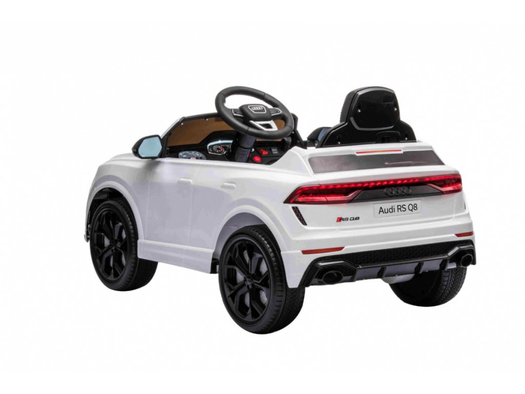 Dětské elektrické autíčko Audi RS Q8 na dálkové ovládání 2,4 GHz. Vozidlo má pěnová EVA kola, přední a zadní LED světla.