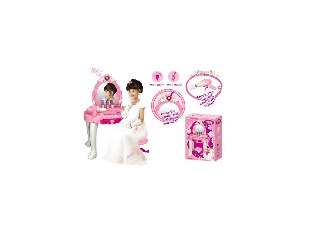 Každá holčička touží být princeznou a s touto hračkou se jí přání snadno splní. Toaletka má velké zrcadlo, stůl se zásuvkou pro ukládání pokladů, praktickou stoličku a celou řadu příslušenství.