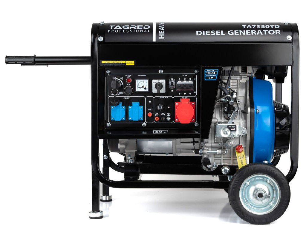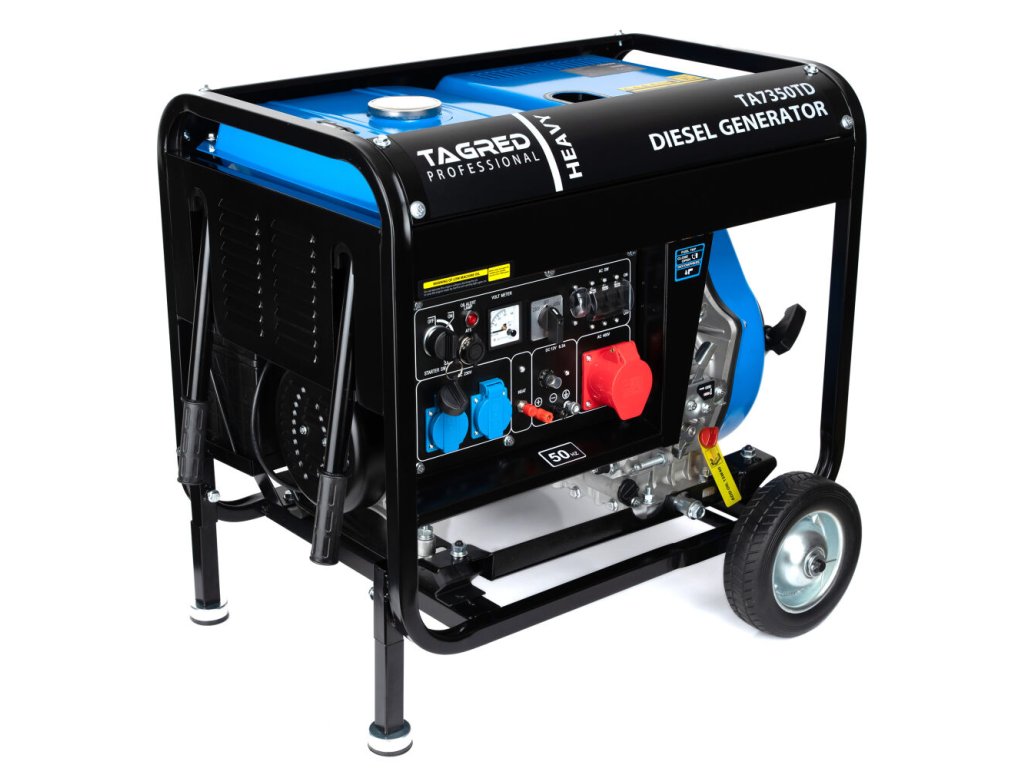 Profesionální elektrocentrála Tagred TA7350TD je poháněna vysoce výkonným, vysoce výkonným dieselovým motorem. Je to spolehlivé řešení, které energeticky zabezpečí váš domov, farmu, firmu a skvěle se hodí na staveniště. Snadno pohání elektrické nářadí, stavební stroje (míchačka betonu, svářečka), osvětlení, mnoho druhů elektrických zařízení.
