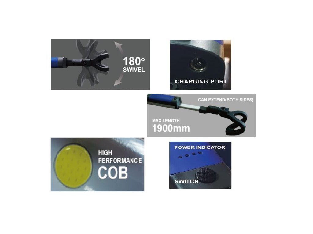 Dílenská LED svítilna pod kapotu je ideální pro různé druhy automobilových oprav. Lampa je vybavena tlačítkem pro regulaci jasu, které umožňuje výběr mezi plným, nebo polovičním výkonem. Po rozložení tyče dosahuje délky 190 cm! Svítilna je vybavena výkonnou baterií o kapacitě 3200 mAh, která zajišťuje provoz až 4,5 hodiny. Baterie se dobíjí pomocí přiloženého USB kabelu typu C. Vyrobena z vysoce kvalitního plastu, který je odolný vůči náročným podmínkám.