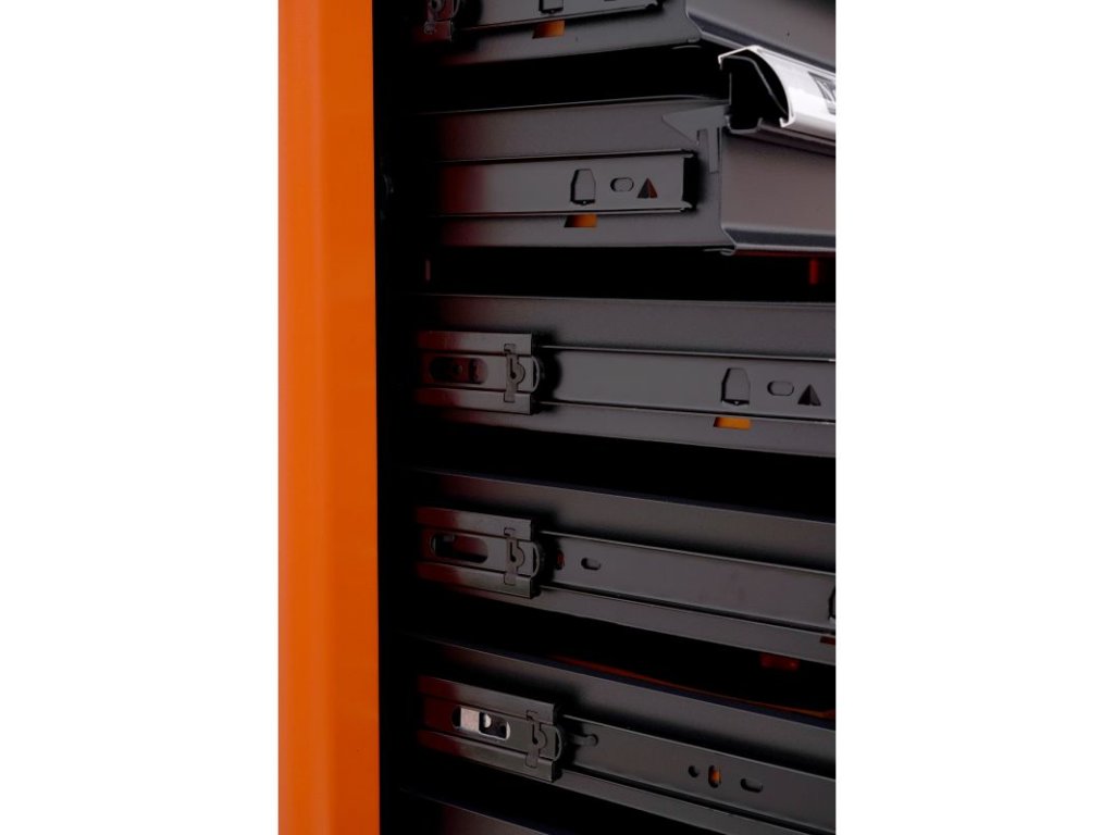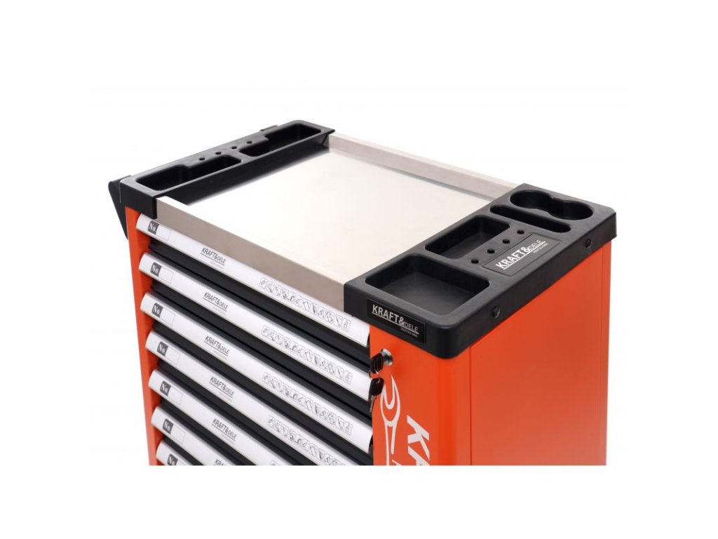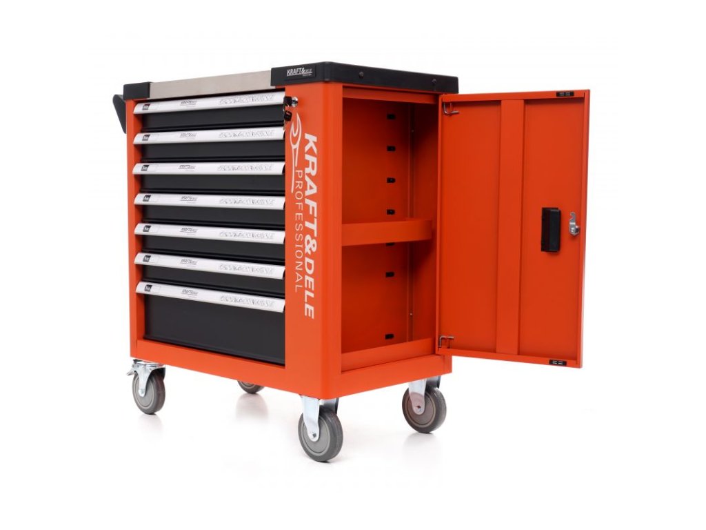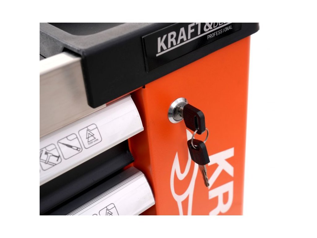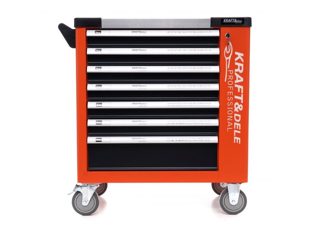S tímto dílenským vozíkem KD1067 budete mít organizováno všechno nářadí v dílně. Vozík obsahuje 7 zásuvek. Skříň má ochranu proti krádeži v podobě centrálního zámku, který zavírá všechny zásuvky pomocí dvou klíčů a zásuvky jsou navíc vybaveny zámky, které brání nechtěnému otevření. I přes vysokou váhu skříň snadno přemístíme na jakékoli místo díky 4 otočným kolečkům, které se dají aretovat a tím zabránit pohybu vozíku.