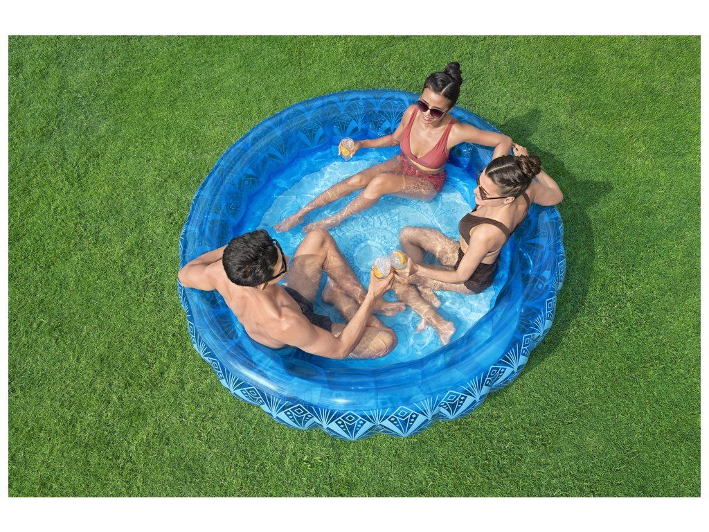 Unikalny wzór w stylu boho i dwa wbudowane uchwyty na kubki sprawiają, że basen zamienia Twój ogród w wakacyjną strefę relaksu. Montaż jest niezwykle prosty i szybki, co pozwala cieszyć się letnimi przyjemnościami bez zbędnego wysiłku. Po sezonie basen z łatwością opróżnisz dzięki praktycznemu zaworowi spustowemu i bez problemu przechowasz na kolejne lato.