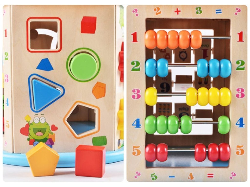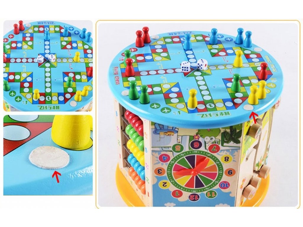 Hračka obsahuje vzdělávací kostku se šešti funkčními stěnami a labyrintem v horní části. Na přiložených obrázcích jsou vyobrazeny všechny stěny této hračky. Hračka neobsahuje figurky člověče nezlob se s hracími kostkami.