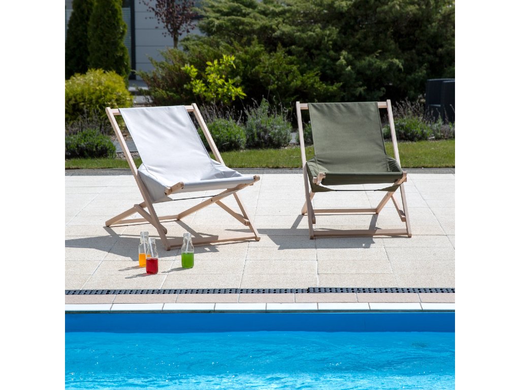 Dřevěné khaki zahradní polohovací lehátko Komfort PATIO