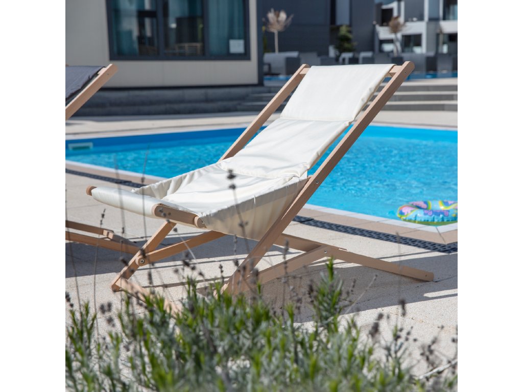 Dřevěné zahradní polohovací lehátko Premium Ecru PATIO