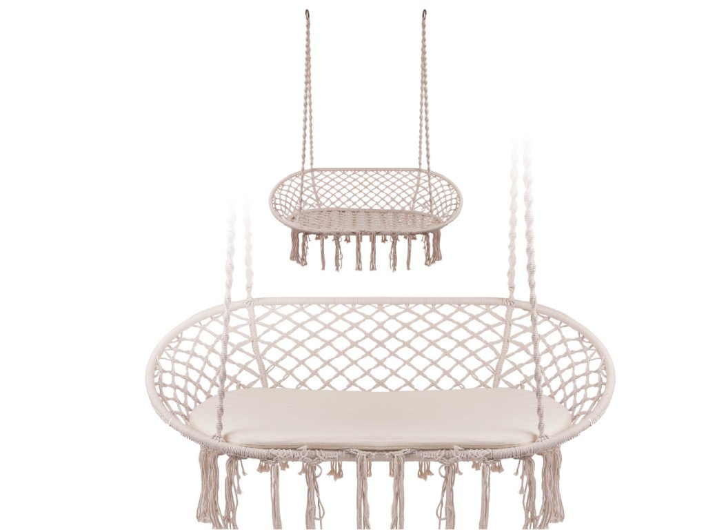 Dvojitá houpačka ve tvaru čapího hnízda je ideální volbou pro každou zahradu. Tento elegantní kousek nábytku je navržen tak, aby pojmul až dvě osoby a zvládl zatížení až 240 kilogramů. Součástí balení je také pohodlný polštář, který vám zaručí maximální komfort při odpočinku. Její jemně béžová barva a ozdobné třásně ze šňůrek přidávají houpačce nejen na funkčnosti, ale i na estetické hodnotě, díky čemuž se stane skvostnou dekorací na vaší zahradě nebo terase.