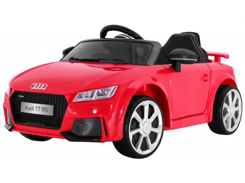 Autíčko Audi TT RS s realistickým vzhledem, originálními detaily, znaky, funkčními předními a zadními světly. Autíčko má koženou sedačku a otvírací dveře. Autíčko je také vybaveno svítícími světly s originální optikou. Pro malé hudební nadšence je k dispozici vstup pro MP3 a USB. Digitální ukazatel stavu a nabití baterií, pro bezpečnost dítěte je na sedačce nastavitelný bezpečnostní pás.