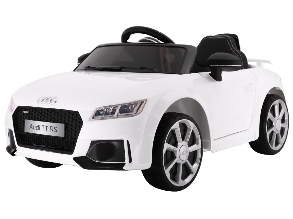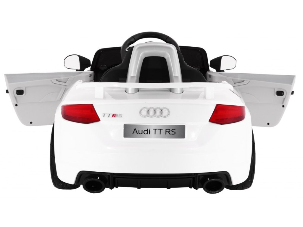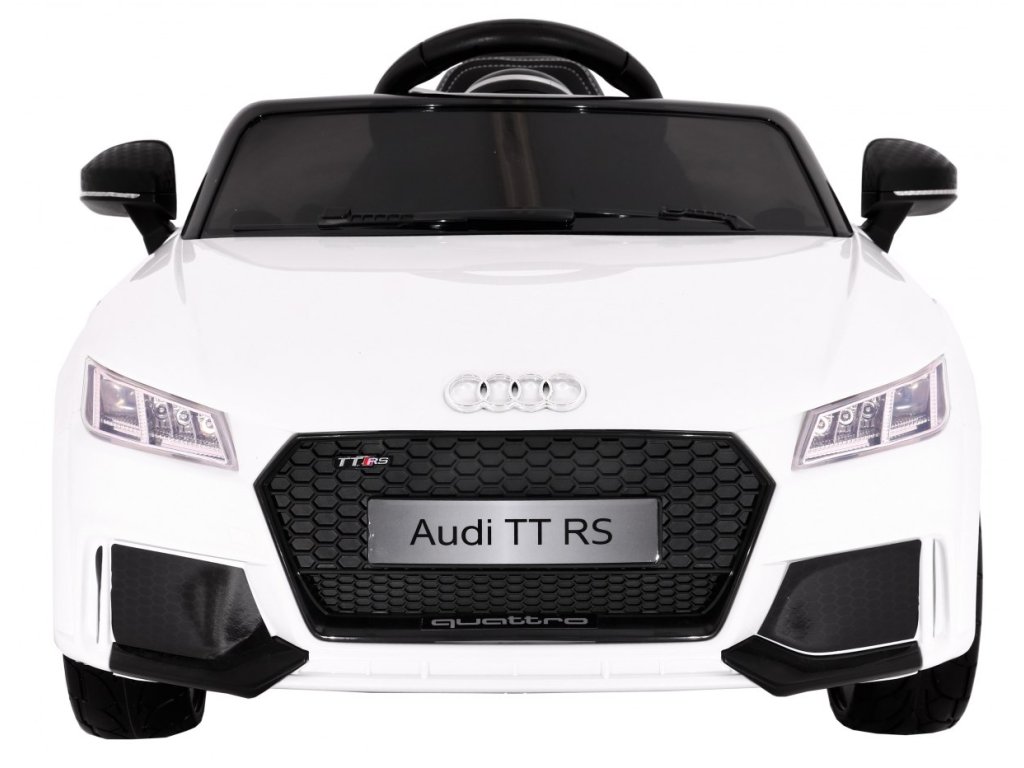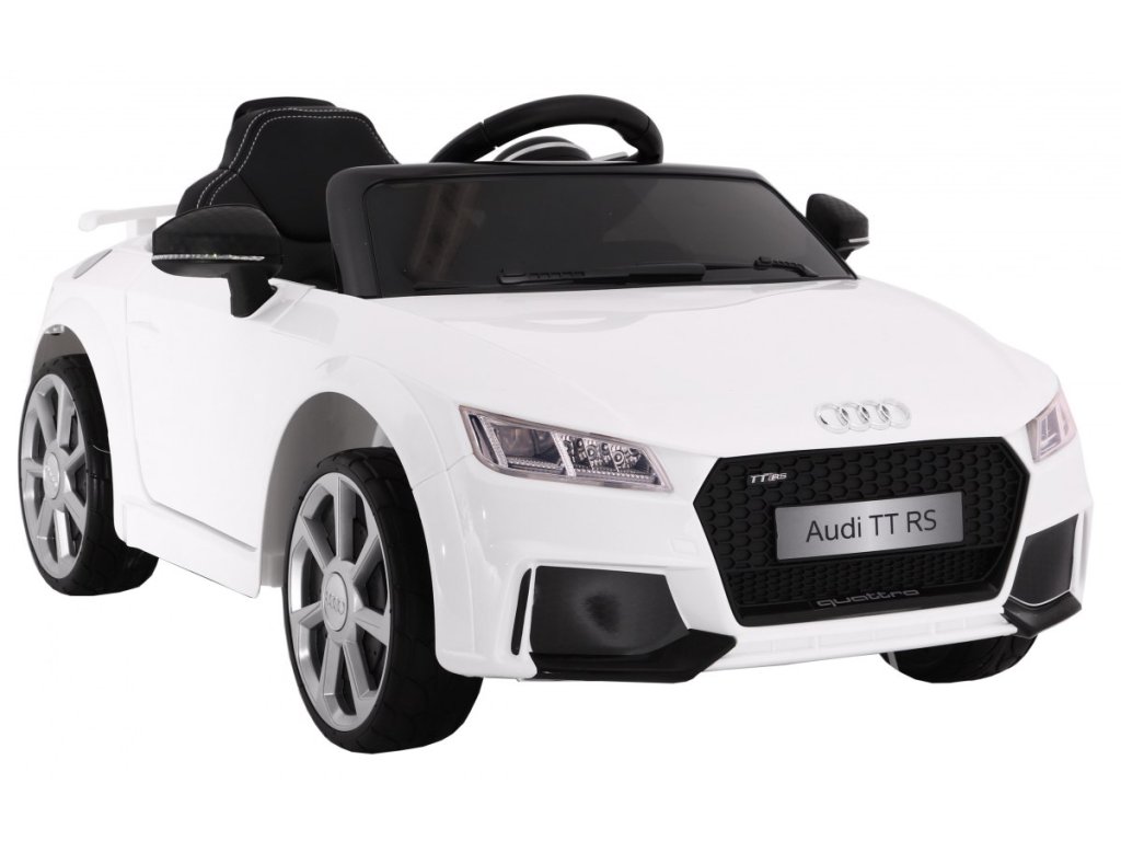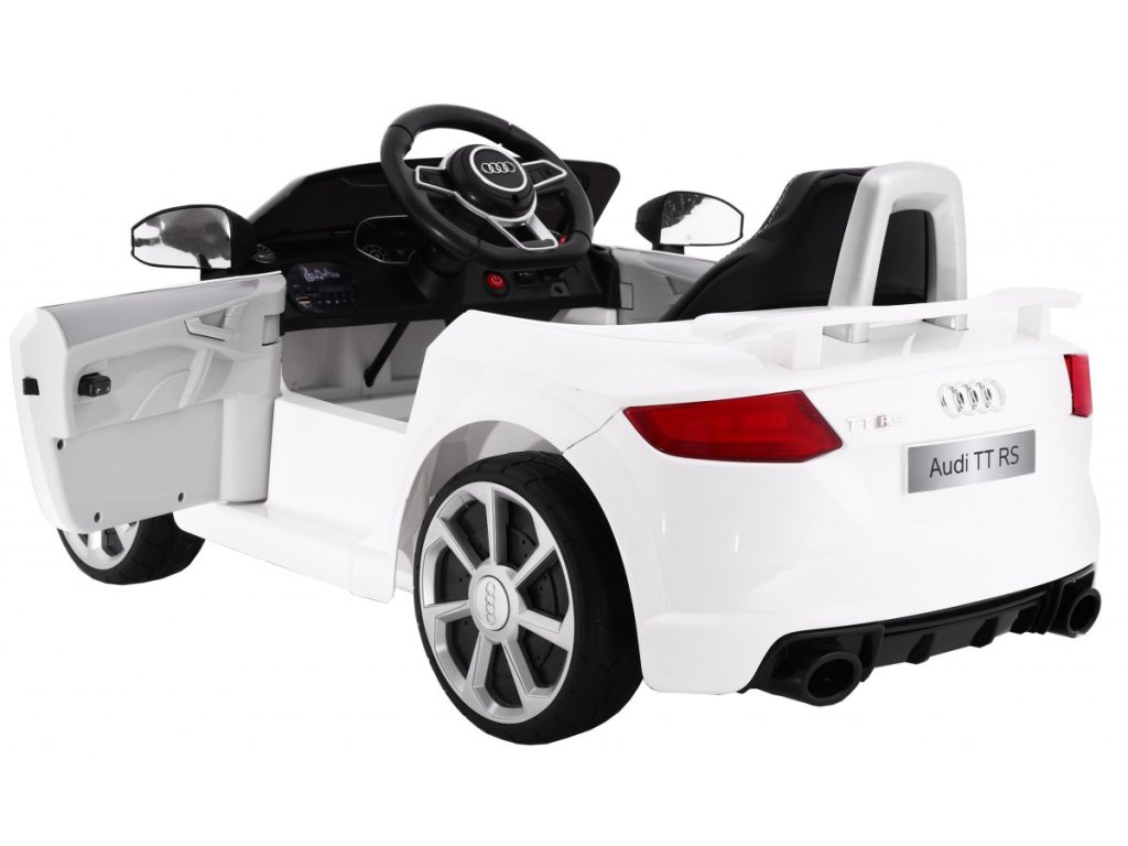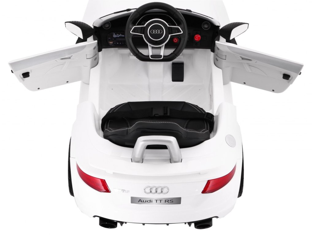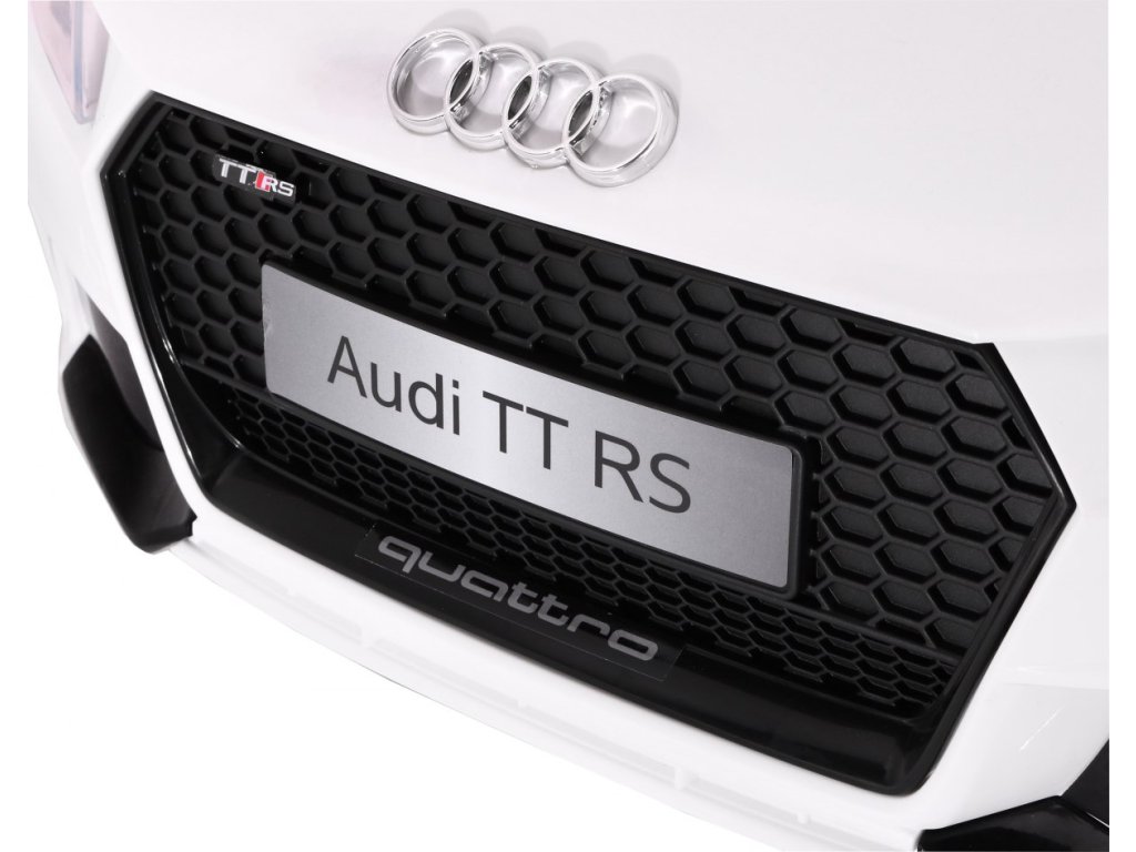 Autíčko Audi TT RS s realistickým vzhledem, originálními detaily, znaky, funkčními předními a zadními světly. Autíčko má koženou sedačku a otvírací dveře. Autíčko je také vybaveno svítícími světly s originální optikou. Pro malé hudební nadšence je k dispozici vstup pro MP3 a USB. Digitální ukazatel stavu a nabití baterií, pro bezpečnost dítěte je na sedačce nastavitelný bezpečnostní pás.