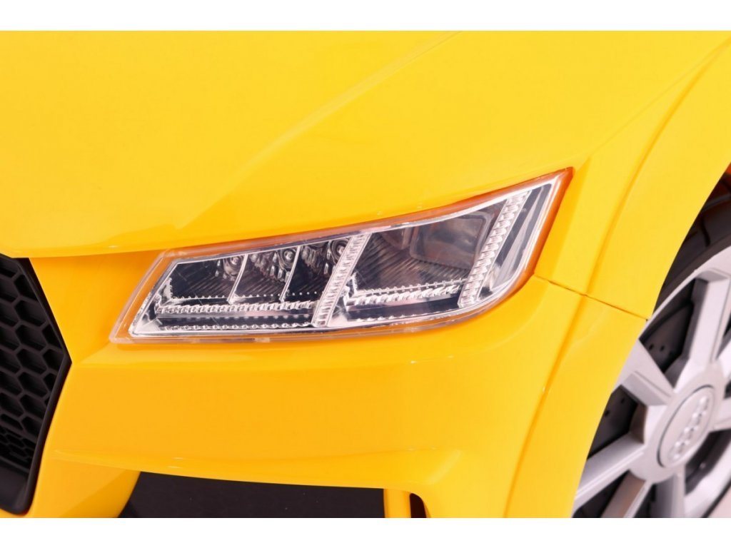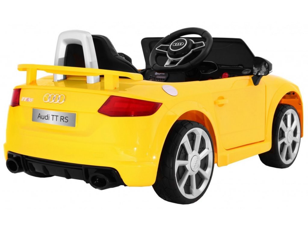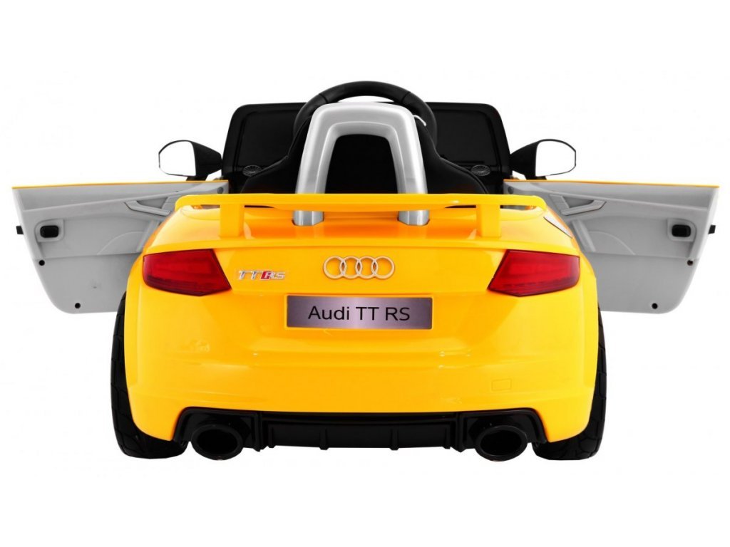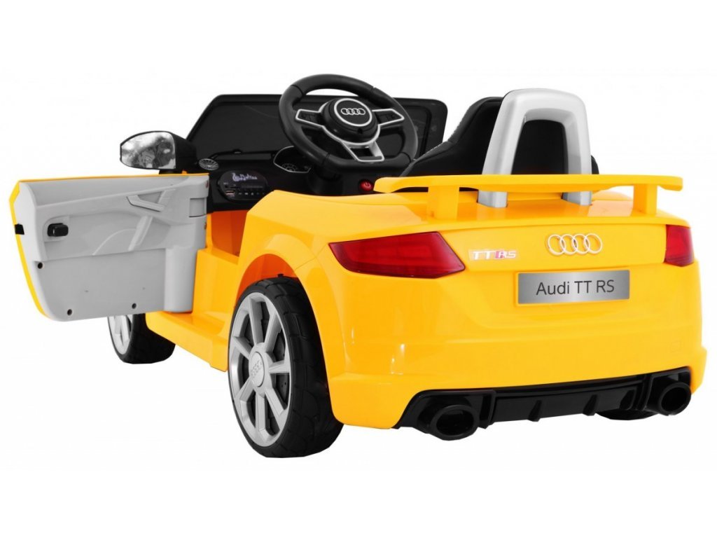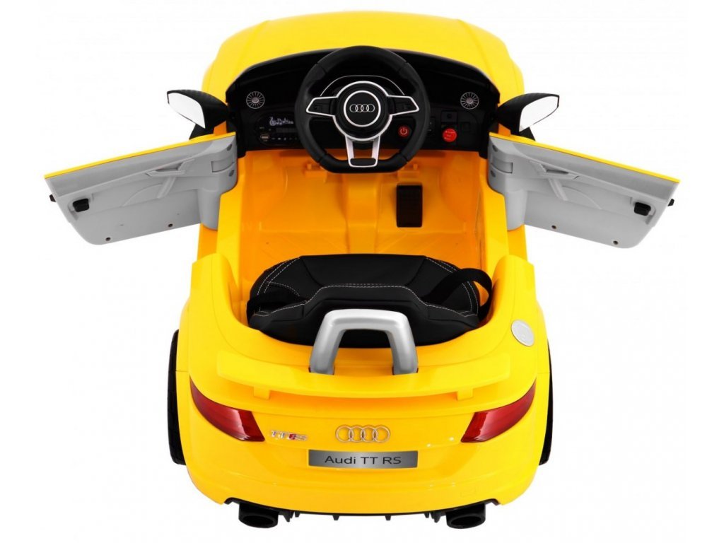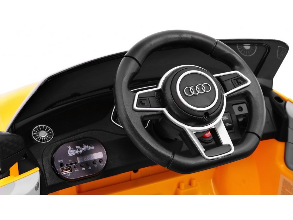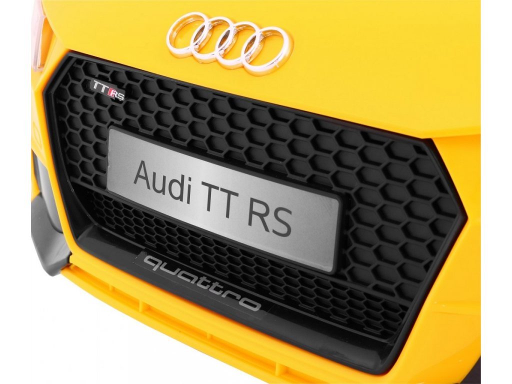 Autíčko Audi TT RS s realistickým vzhledem, originálními detaily, znaky, funkčními předními a zadními světly. Autíčko má koženou sedačku a otvírací dveře. Autíčko je také vybaveno svítícími světly s originální optikou. Pro malé hudební nadšence je k dispozici vstup pro MP3 a USB. Digitální ukazatel stavu a nabití baterií, pro bezpečnost dítěte je na sedačce nastavitelný bezpečnostní pás.