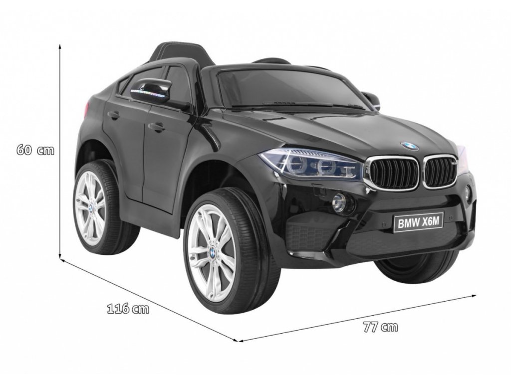 Krásné autíčko BMW X6M je vybaveno otevírajícími dveřmi, má úžasné světelné efekty, pěknou hudbu, realistický zvuk motoru. Vozidlo lze ovládat pomocí dálkového ovládače nebo může dítě řídit vůz samo. V autě můžete také připojit své vlastní zařízení MP3, takže dítě může poslouchat své oblíbené skladby. Jedná se o realistické auto, které potěší každého malého řidiče. Součásti je plachta na přikrytí auta a USB flash disk, který obsahuje instruktážní video.