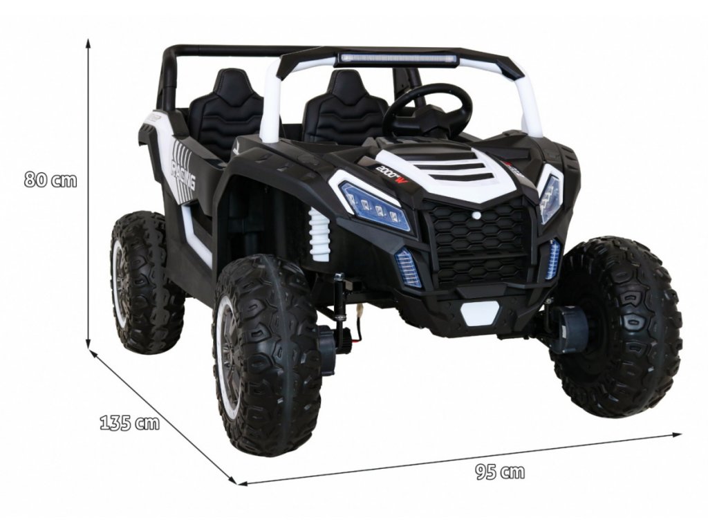 Elektrické autíčko Buggy ATV Racing 4x4 s dálkovým ovládáním 2,4 GHz. Na dálkovém ovládání je tlačítko STOP, pro bezpečné zastavení vozidla a 3 rychlosti.
