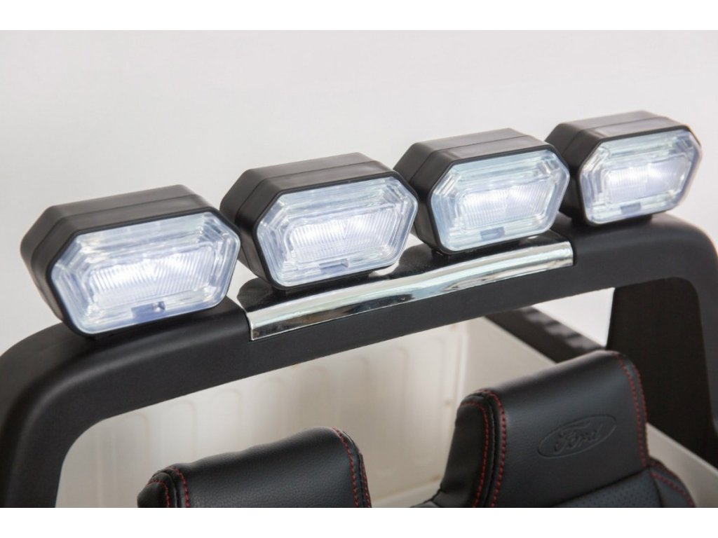 Ford Ranger Wildtrak 4x4 má originální vzhled terénního vozidla, kvalitní materiály a zpracování. Otvírací dveře, zadní čelo, přední kapotu s prostorem na drobnosti. Jezdí vpřed/vzad na nožní pedál, nebo se ovládá dálkovým ovladačem bluetooth s plynulým rozjezdem, 3 rychlostí vpřed/3 vzad, pravá/levá, s přednostní jízdou nad pedálem, tzn. dítě můžete ovladačem zastavit. Jízda na pedál vpřed/vzad se ovládá řadící páčkou na přístrojové desce, přepínačem volíte náhon 4x4 nebo 2x2 ( tzn. možnost vypnutí předního náhonu). Po otočení klíče zapalování na 2 polohy zapínáte autíčko, osvětlení celého vozu, přístrojové desky, přehrávání muziky, 1. údaj na displeji po otočení klíče ukazuje voltmetr nabití baterie, zazní start motoru, zvukové efekty klakson, písničky jsou ovládané také na volantu, přehrávačem FM, Mp3, TF, USB s krásným zvukem volíte vlastní hudbu a hlasitost. Zadní náprava je pérovaná. Autíčko má velká EVA kola (jako gumová) zajišťují tichou a příjemnou jízdu. Při nesešlápnutém pedálu tah motoru nahrazuje brzdu nebo brzdíte ovladačem. Auto má náhon na všechny 4 kola, tím je vhodné i pro jízdu v terénu. Pro větší bezpečnost dětí je na luxusní čalouněné sedačce nastavitelný bezpečnostní pás.