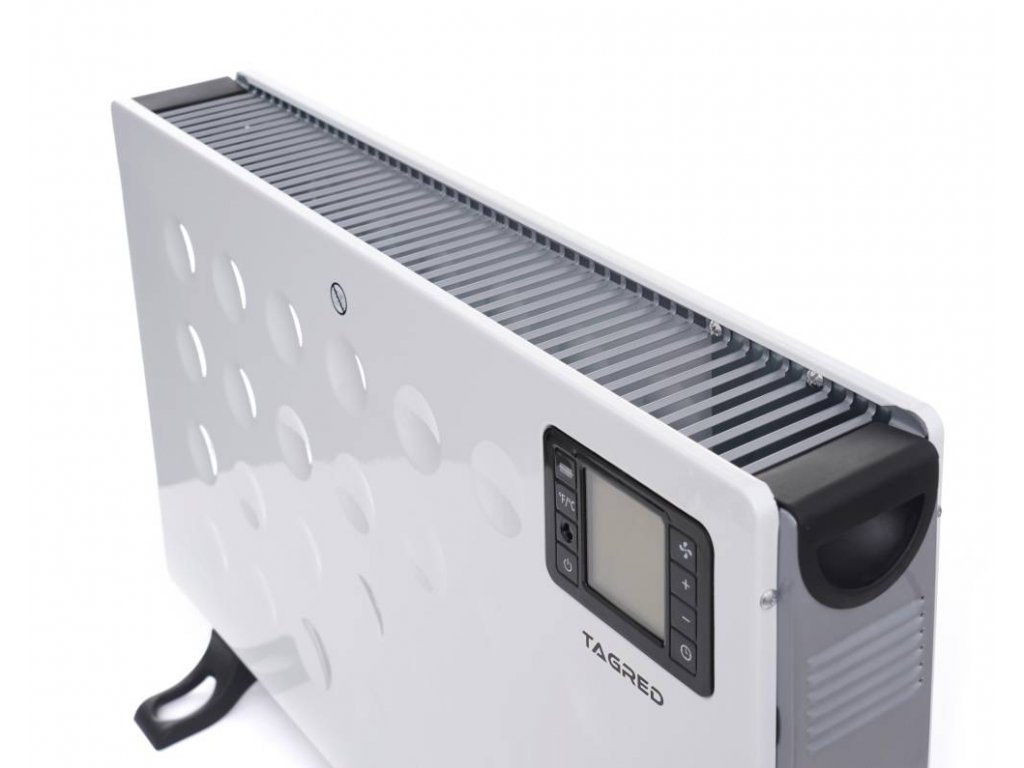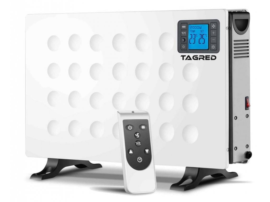 Elektrický ohřívač Tagred TA941W je perfektním řešením pro podzimní a chladné zimní dny. Má zabudovaný 2000W vysokoteplotní ohřívač vybavený termostatem, který nám umožňuje udržovat požadovanou teplotu v místnosti. Možnost úpravy nastavení parametrů umožňuje šetřit energii při jeho provozu. Ohřívač je vybaven LCD displejem a dálkovým ovládačem.
