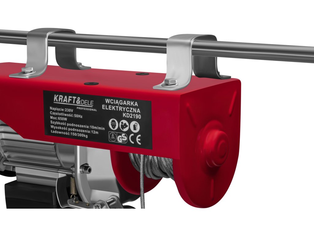 Tento dílenský naviják nabízí flexibilitu se dvěma konfiguracemi nosnosti. S jednoduchým hákem zvládne břemena až do 150 kg, zatímco s použitím kladkostroje a dvojitého háku se jeho nosnost zdvojnásobí na působivých 300 kg. Dlouhé a odolné ocelové lano zaručuje stabilitu a široký rozsah použití, zatímco kabelový ovladač pro směr nahoru–dolů umožňuje mimořádně přesné ovládání. Ať už potřebujete zvednout motor v garáži, materiál na stavbě nebo těžké komponenty v dílně, elektrický naviják Kraft&Dele KD2190 je připraven splnit vaše požadavky s maximální bezpečností a efektivitou.