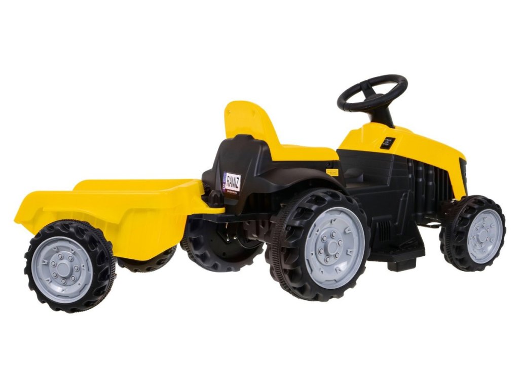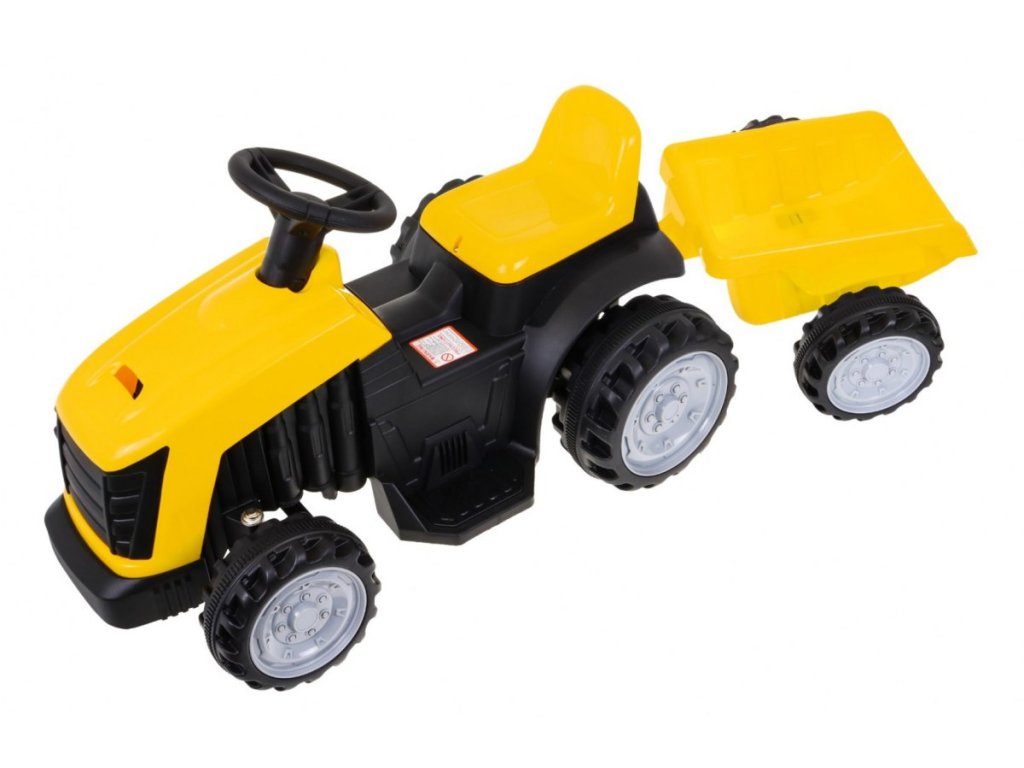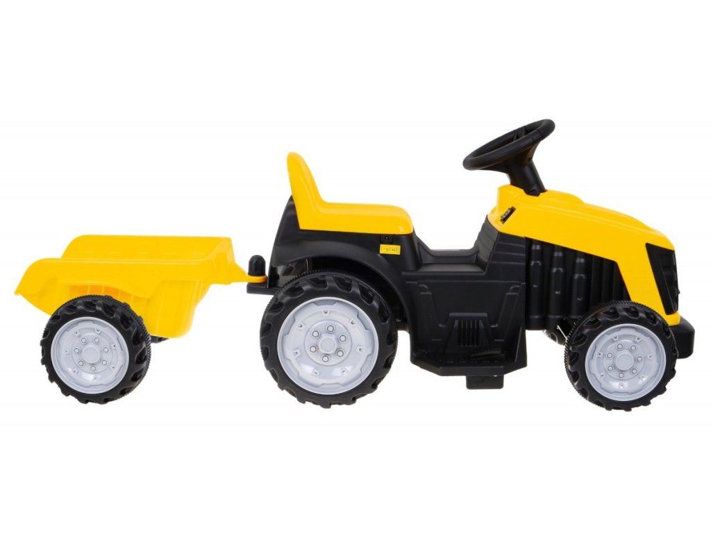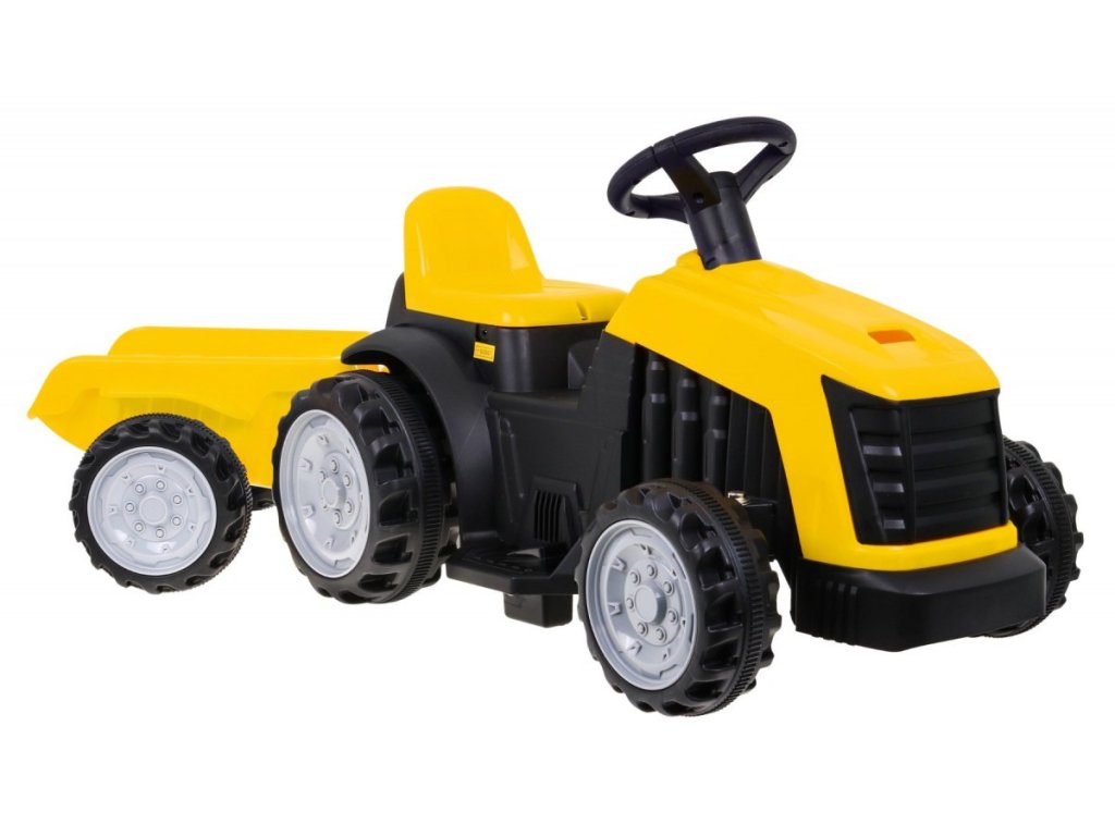 Elektrický traktor s přívěsem je vybaven plastovými koly. Součástí balení je baterie i nabíječka. Traktůrek obsahuje jeden elektrický motor o výkonu 25W a dle našeho názoru je vhodný pro děti od 1 do 4 let.