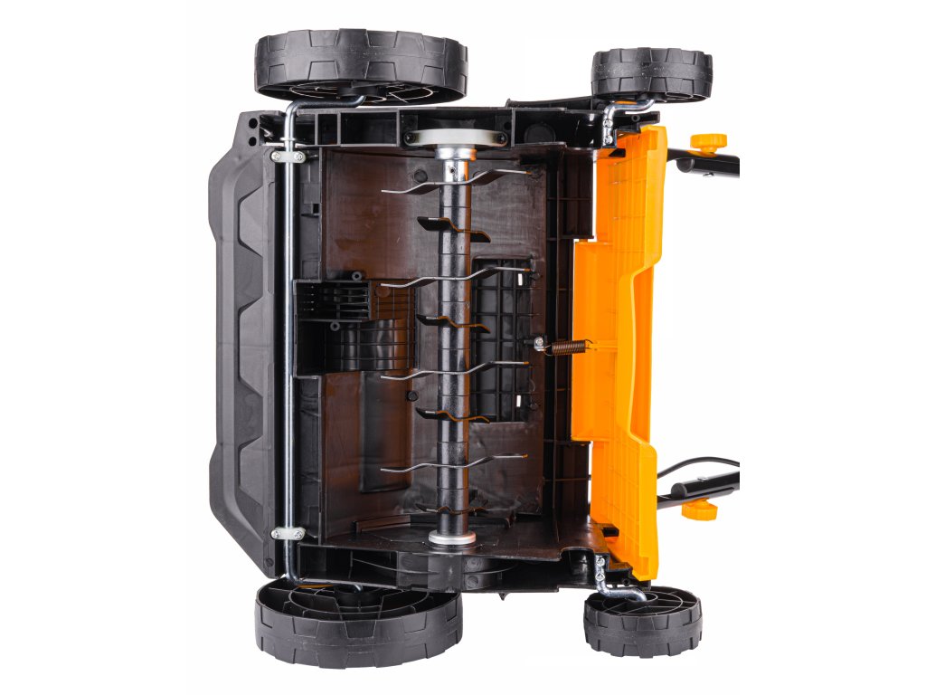 Model PM-AEW-2400M od značky POWERMAT nabízí dva nezávislé válce, umožňující precizní a oddělené provádění těchto klíčových operací. Snadná výměna válců a čtyřstupňové nastavení hloubky práce zaručují optimální výsledky bez poškození kořenů. S prostorným 30litrovým sběrným košem, který je odolný vůči povětrnostním vlivům, a robustní konstrukcí je údržba trávníku s POWERMATem efektivní a pohodlná. Investujte do krásy vaší zahrady a užijte si zdravý a vitální trávník po celý rok.