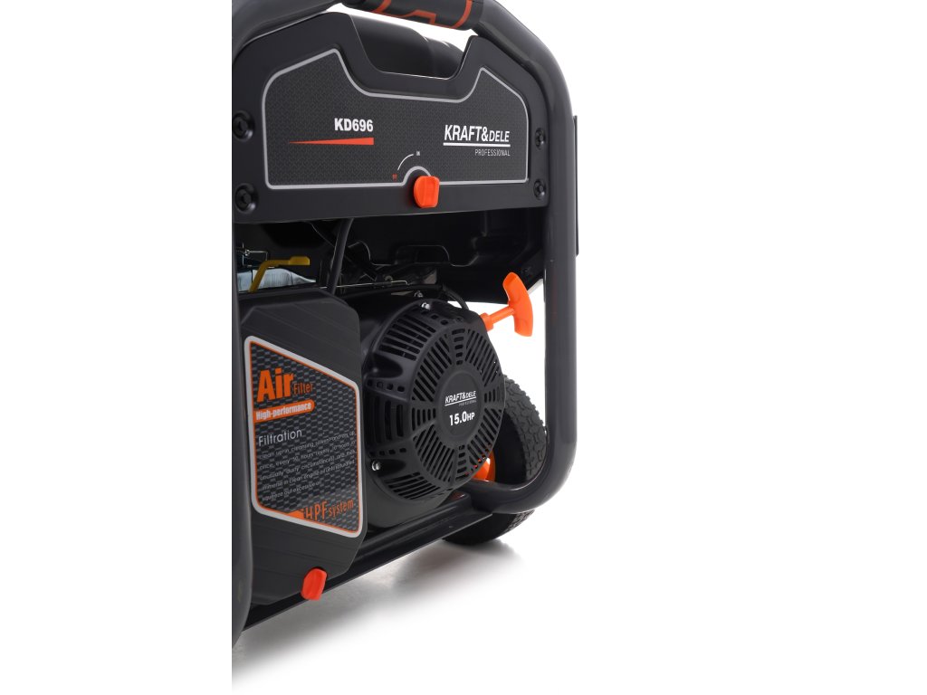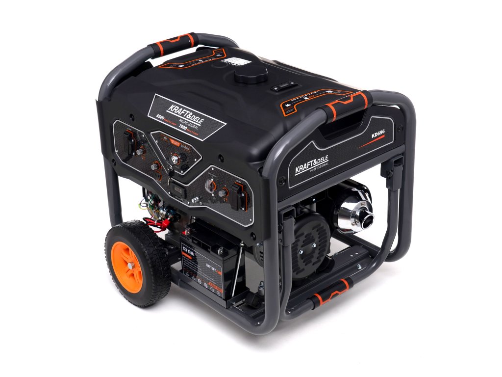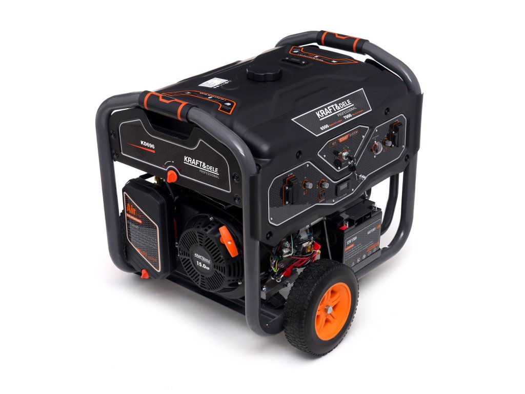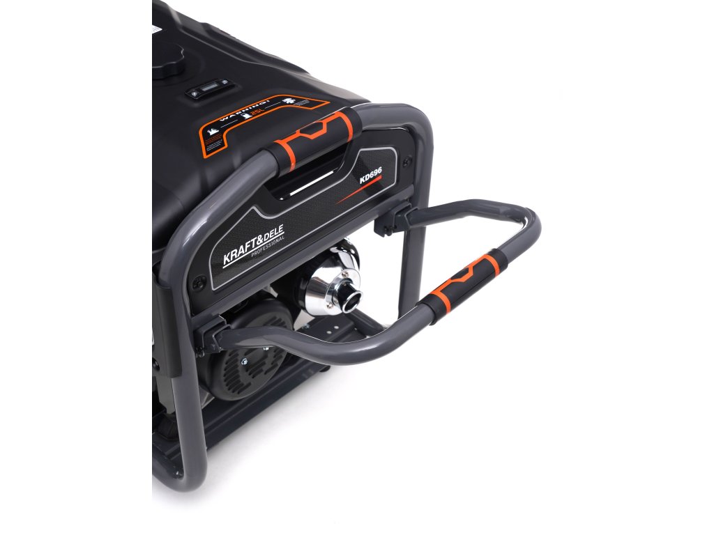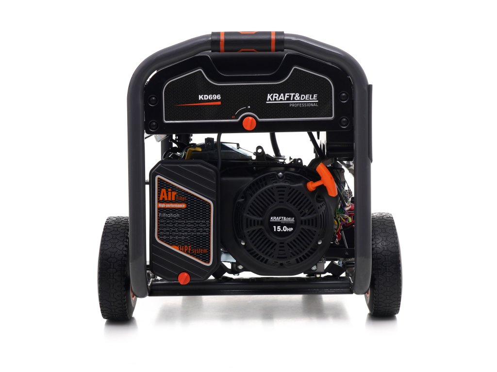 Přenosná jednofázová elektrocentrála s označením KD696 je určena pro výrobu střídavého proudu 220V-230V pomocí 4taktního spalovacího motoru OHV. Použitý design Open Frame snižuje povrch a hmotnost jednotky až o 20 %. Je ideální pro staveniště, domy, letní domy, kempy a všude tam, kde potřebujeme spolehlivý zdroj elektřiny. Motor agregátu má pochromovaný píst, takže se vyznačuje tichým a plynulým chodem a zároveň je velmi hospodárný. Gumové stabilizátory a uložení motoru agregátu zajišťují tlumení vibrací a minimalizaci hluku. Jednotka je vybavena voltmetrem a 12V výstupem umožňujícím nabíjení baterie. Díky použití vhodného oleje (CDgrade nebo 10W-30, 15W-40) a senzoru nízké hladiny oleje jednotka pracuje s hlučností 90dB. Přiložená kolečka zvyšují komfort pohybu jednotky.