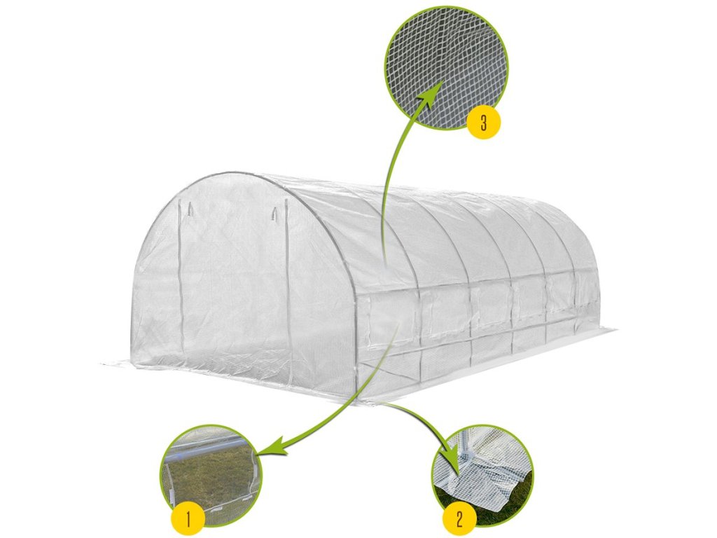 Fóliovníky jsou perfektní pro pěstování všech druhů zeleniny, jako jsou rajčata, okurky, papriky atd., nahrazující domácí zahradu. Kovová konstrukce se skládá ze 6 částí. Pro zajištění dostatečné stability byla přidána horní příčka. Předek fóliovníku jsou obdélníkové dveře se zipem, takže ztráta teploty bude minimální. Exponovaná okna s moskytiérami na obou stranách v námi nabízeném fóliovníku umožňují upravit teplotu a množství tepla v interiéru a přizpůsobit je daným plodinám. To vytváří ideální podmínky pro vegetaci všech druhů plodin a zeleniny jako jsou rajčata, okurky, fazole a cukety. Naše fóliovníky jsou vyrobeny ze silných, pozinkovaných kovových trubek o průměru 24 mm. Vyztužená konstrukce je odolná vůči výrazným teplotním rozdílům, takže po odstranění fólie může zůstat i na zimu na Vašich zahradách. Navíc fólie používaná v našich fóliovnících je mnohem silnější než standardní fólie používaná u podobných výrobků tohoto typu. S ohledem na odolnost fólie jsme ji vybavili dodatečně zabudovanou síťovinou, díky které je mnohem odolnější! Fólii je nutné po letní sezóně vysušit a ukrýt v suché místnosti, přičemž výrobce doporučuje schovat i samotnou konstrukci na podzimní a zimní období. Fóliovník chrání plodiny před účinky typických vnějších faktorů, jako je chladný a suchý vítr, intenzivní déšť, sníh nebo kroupy a ochráníte se také před ptáky, kteří jsou zhoubou všech plodin. Díky návodu přiloženému ke každému výrobku je montáž tunelu extrémně jednoduchá. Na intuitivně sestavený rám z ocelových trubek nasadíme fólii dodávanou s fóliovníkem, kterou připevníme na trubky rámu. Zemní zástěru z fólie trčící po stranách fóliovníku je možné zasypat zeminou nebo zakopat do země, což ochrání fólii před zvedáním. Přední část fóliovníku tvoří obdélníková dvířka se zipem, díky nimž budou teplotní ztráty minimální. Průhledná fólie se vyznačuje nejvyšší životností a odolností vůči povětrnostním vlivům. V první řadě zajistí trvanlivost produktu, optimální tepelné vlastnosti a přiměřenou propustnost slunečního záření včetně UV paprsků po 4 sezóny. Tento typ fólie je určen k zakrytí konstrukce fóliovníků za účelem urychlení růstu rostlin a jejich ochrany před škodlivými vlivy povětrnostních podmínek. Použitá fólie zajišťuje nejvyšší možné parametry rozptylu světla, výrazně snižuje počet zatemněných míst a zajišťuje tak rovnoměrné oslunění, které se promítá do rostlinné vegetace. Třívrstvá zahradní fólie splňuje vysoké požadavky na kvalitu kladené uživateli. Dvě vnější vrstvy zajišťují správnou pružnost, zvýšenou pevnost a odolnost proti poškození a také vynikající propustnost viditelného světla. Třetí - vnitřní je silná PE mřížka, která dodává fólii velmi vysokou odolnost. Profesionální zahradní fólie, která splňuje nejvyšší požadavky pěstitelů zeleniny a květin. Určeno pro zahradní tunely, pro plodiny vyžadující vysokou intenzitou světla, zejména v obdobích nízkých teplot nebo oblačnosti, např. růže nebob rané druhy zeleniny. Vzhledem k tomu, že je ho tepelná absorpce je na úrovni přes 80%, zvyšuje výnos plodin, urychluje vegetaci rostlin a poskytuje účinnou ochranu proti mrazu, čímž dochází k výrazné úspoře tepelné energie ve vytápěných fóliovnících. Předností fólie jsou: nízká světelná odrazivost zajišťující vysokou propustnost slunečního záření, selektivní propustnost infračerveného záření, dobré antistatické vlastnoti, vysoká životnost, odolnost proti roztažení, proražení a roztržení, nepropustnost pro páru a plyny. Díky nekrytým, srolovaným oknům máme nad plodinami větší kontrolu. V případě potřeby můžeme zvýšit množství příchozího světla. Odkrytí oken má pozitivní vliv na cirkulaci vzduchu a regulaci teploty uvnitř tunelu. Horký vzduch, který je lehčí, stoupá nahoru a uniká otevřeným oknem, díky čemuž se naše plodiny budou vyvíjet za optimálních podmínek. Návod na fóliovník.