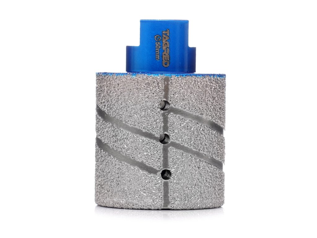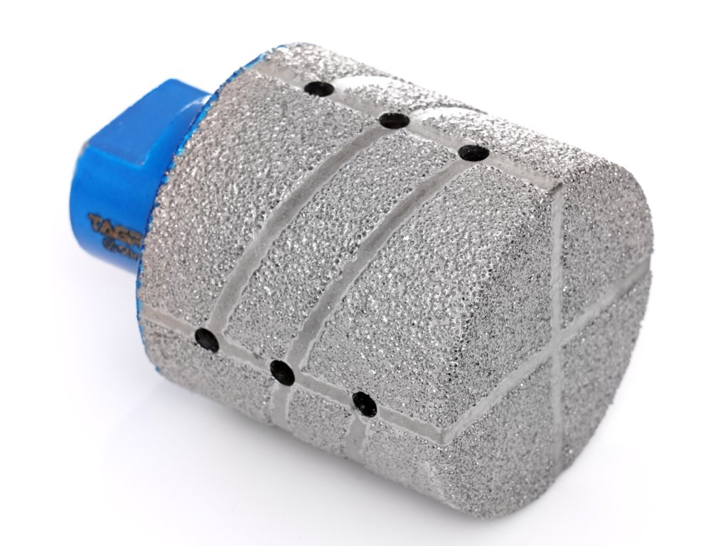 Frez diamentowy TAGRED służy do precyzyjnej obróbki materiałów typu ceramika, kamień, gres. Pomaga nadać im jednolity wygląd i odporną gładką strukturę warstwy zewnętrznej. Dzięki przelotowym otworom nie zatyka się podczas pracy, na powierzchni osadzone są niewielkie cząstki przemysłowych diamentów. Wysokiej jakości wytrzymały nasyp wolframowy zapewnia długą żywotność, wręcz rewelacyjną skuteczność.