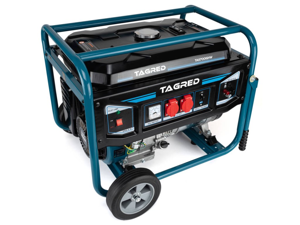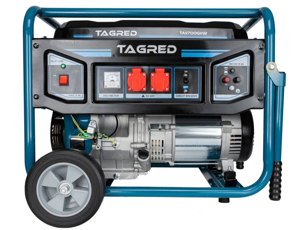 Elektrocentrála TAGRED TA11700GHW je mobilní - má pevná kolečka a madla pro přepravu