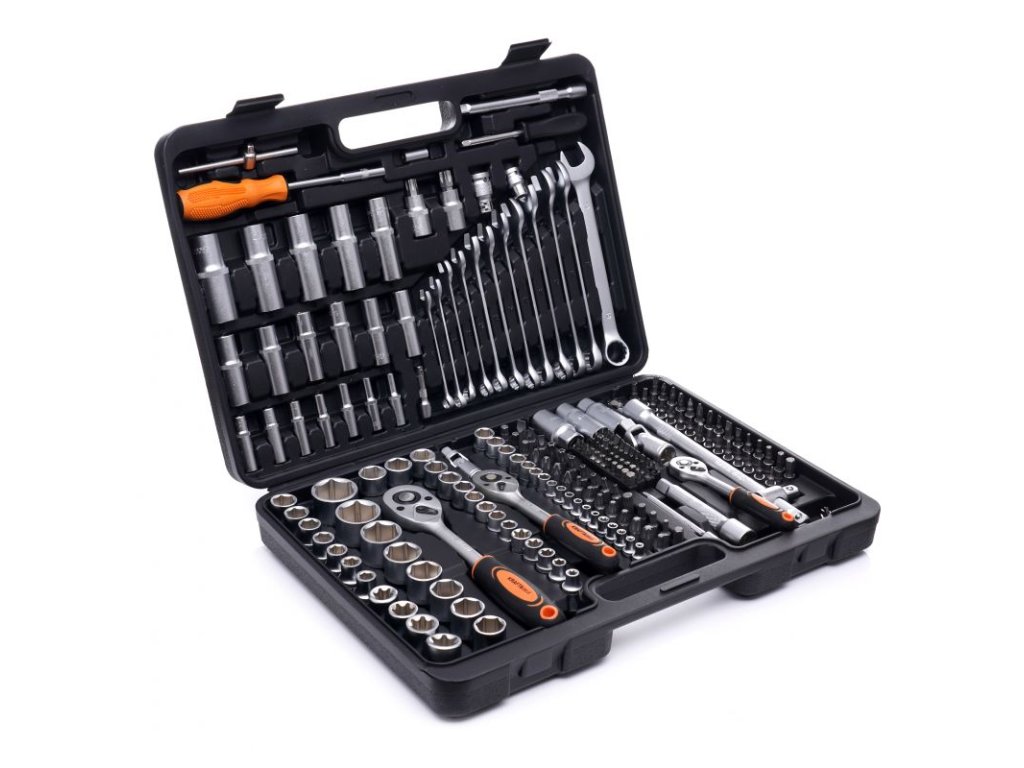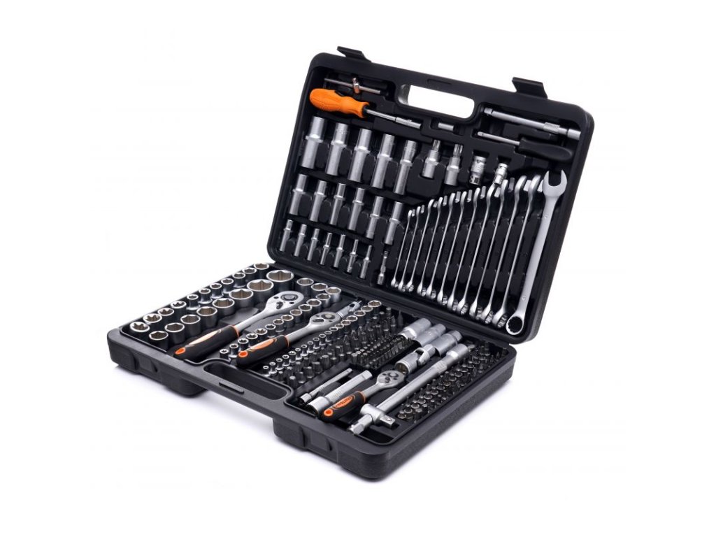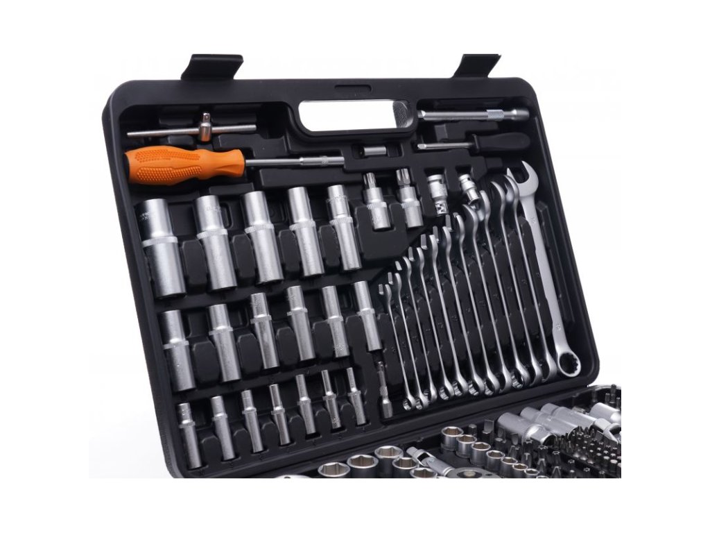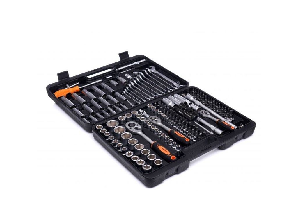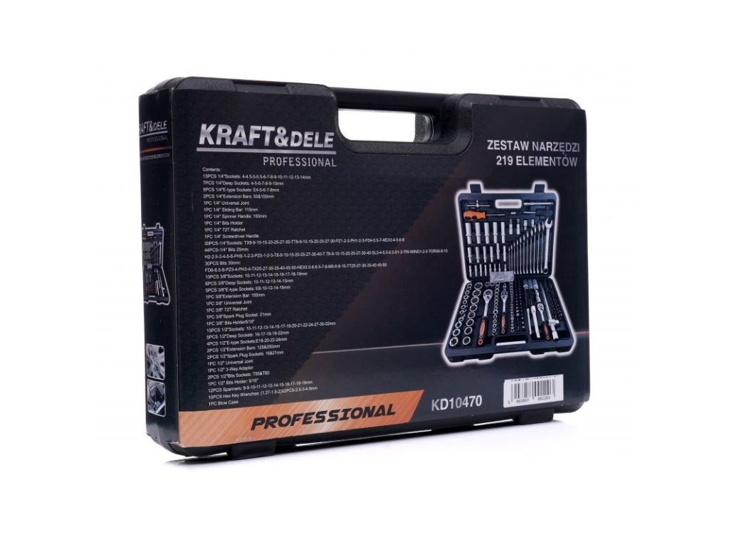 Celá sada se skládá z 219 různých prvků, které zajistí správný výběr nástroje pro vaše potřeby. Nástroje jsou vyrobeny z tvrzené chrom -vanadové oceli (CrV) určené pro dílenské nářadí. Chrom zaručuje oceli odolnost proti korozi, oxidaci, oděru a vysokou odolnost vůči vysokým teplotám. Přídavek vanadu inhibuje růst zrna během zpracování a současně zvyšuje tažnost kalených i temperovaných forem.