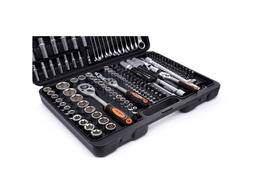 Extrémně rozsáhlá sada nástrojů Kraft & Dele. Nástroje se vyznačují solidním zpracováním, odolnými materiály a šikovným pouzdrem, ve kterém má každý nástroj své místo.