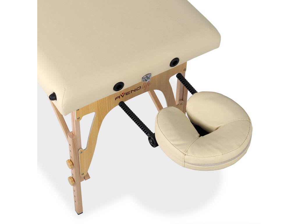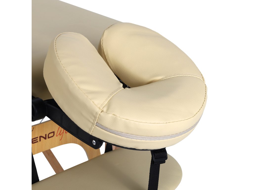 Pěna o tloušťce 3,5 cm odolná proti proležení zaručuje, že se stůl nedeformuje ani po letech intenzivního používání. Opěrka hlavy je nastavitelná ve dvou rovinách, takže si ji můžete přizpůsobit individuálním potřebám každého klienta. Dodatečná podpora v oblasti ramen zajišťuje ještě větší komfort a relaxaci.