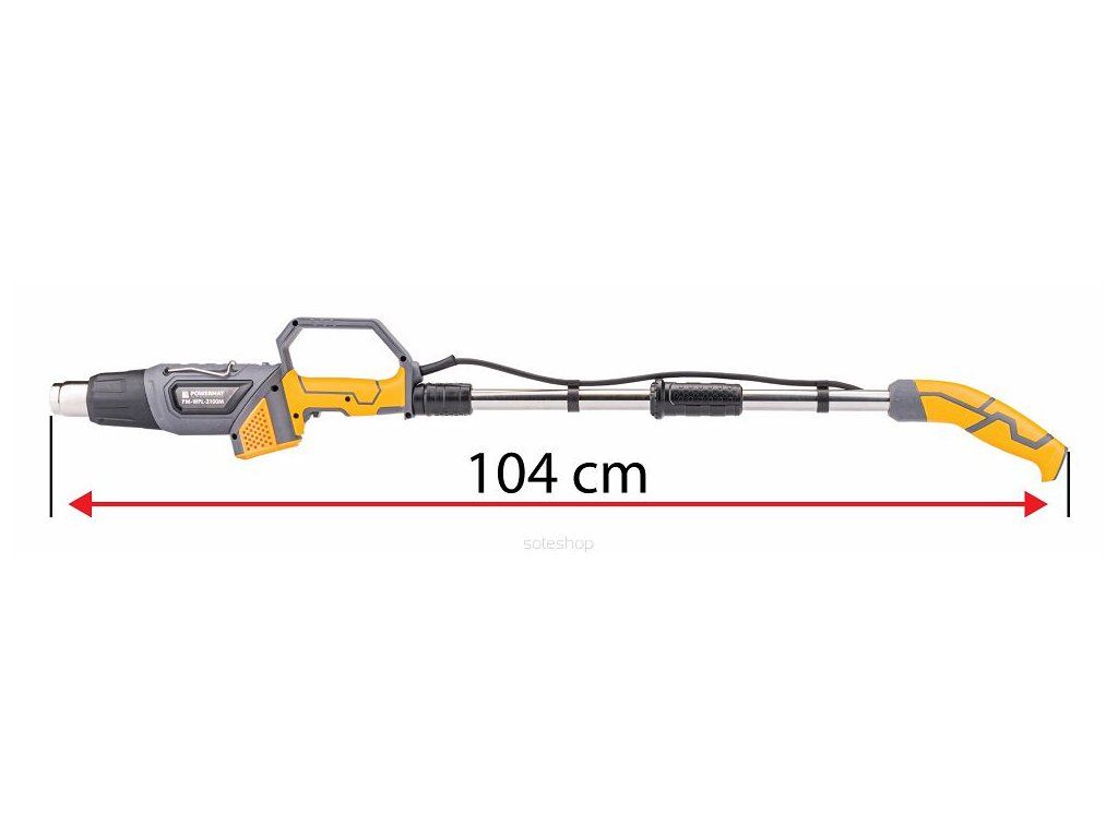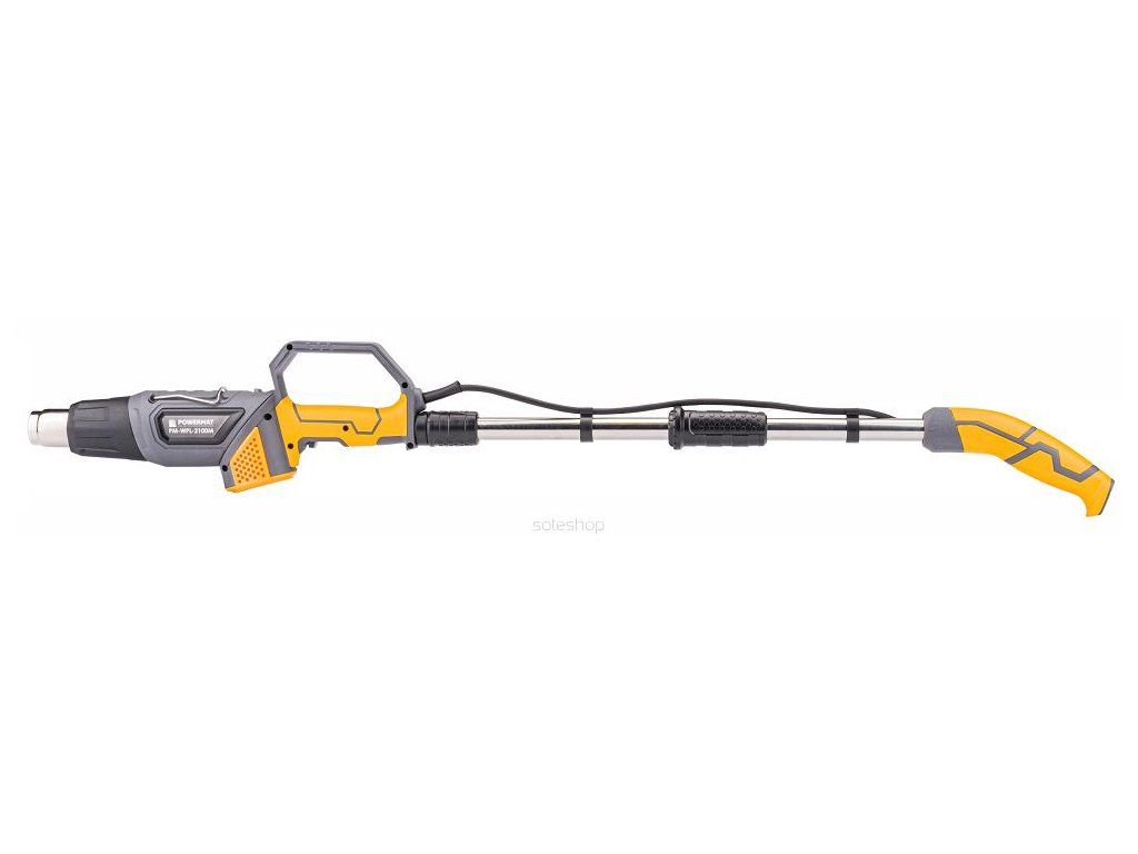 Horkovzdušná pistole má nastavitelnou hlavu, která umožňuje změnit její účel stisknutím tlačítka a otočením o 90 stupňů nebo narovnáním na délku až 180 stupňů.