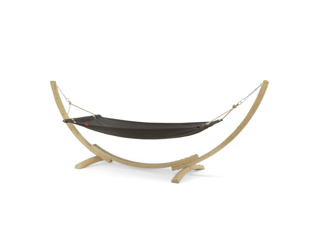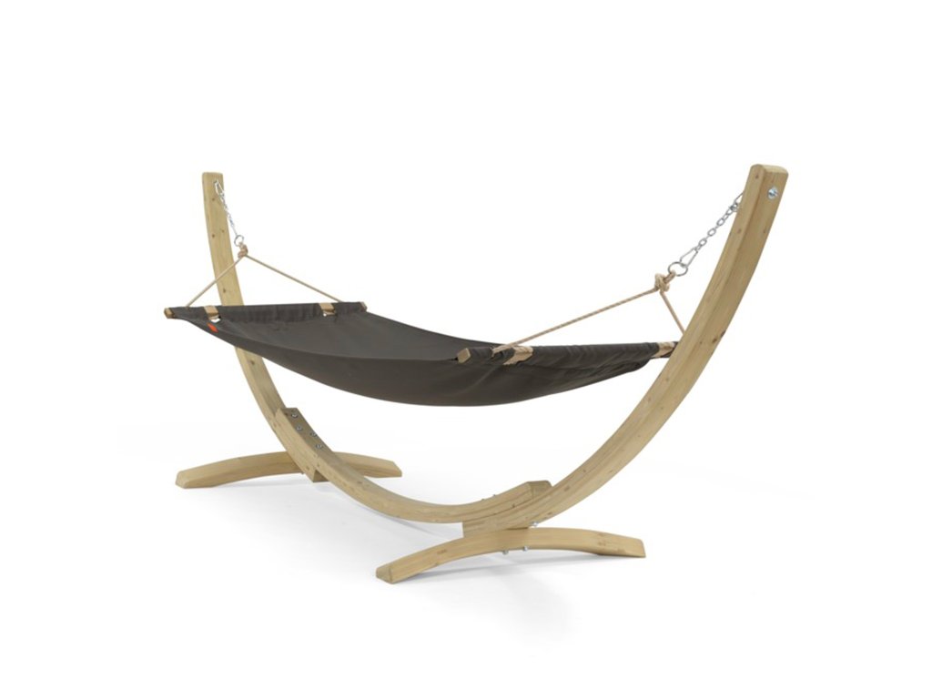 Houpací síť s dřevěným rámem. Zaručená relaxace uprostřed přírody s houpací sítí s rámem ze smrkového dřeva. Komfortní a pohodlná zahradní houpací síť je nejen praktickým doplňkem vaší zahrady, terasy nebo hotelového prostoru, ale je také designovým dekorativním prvkem. Pevný rám z impregnovaného a vrstveně lepeného smrkového dřeva zajišťuje vysokou odolnost vůči měnícím se povětrnostním podmínkám a cleanaboo sedadlo v grafitovém odstínu kombinuje odolnost s pohodlím zaručující nejvyšší komfort používání. Představte si chvíli klidu, když se houpete na houpací síti a užíváte si blízkost přírody a harmonii okolí. Zahradní houpací síť s cleanaboo sedadlem je perfektním místem pro regeneraci po náročném dni. Její jemné houpání pomáhá snižovat stres a podporuje hluboký odpočinek. Bez ohledu na to, zda plánujete trávit odpoledne na zahradě nebo hledáte perfektní místo pro krátké zdřímnutí na terase, houpací síť Breve je perfektní volbou.