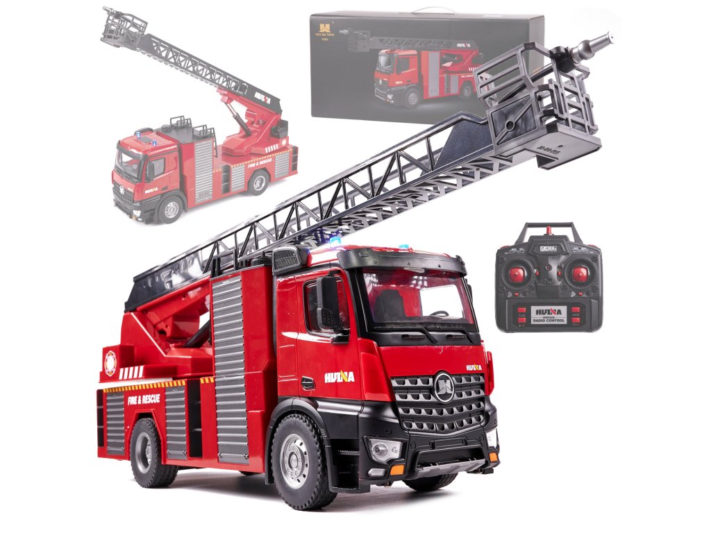 Oheň? Nehoda? Těchto úkolů se zhostí odvážní hasiči vybavení těžkou technikou a azásahu dosáhne obrovské dálkově ovládané hasičské auto. Vozidlo je opravdu působivé. Toto vozidlo bude opravdu hasit požáry! Má nastavitelný žebřík s požární hadicí, ze které teče voda! Stačí naplnit nádrž umístěnou hned za kokpitem řidiče. Vůž vašemu dítěti umožní cítit se jako skutečný hasič a určitě poskytne spoustu vzrušující zábavy.