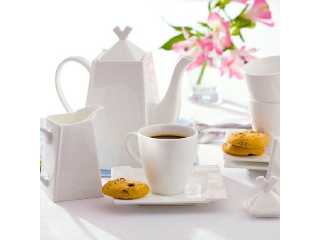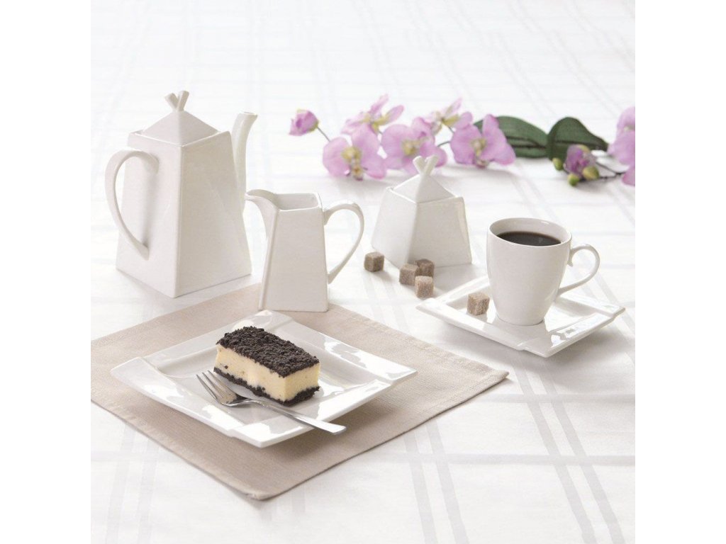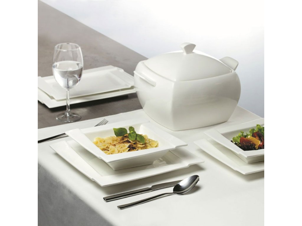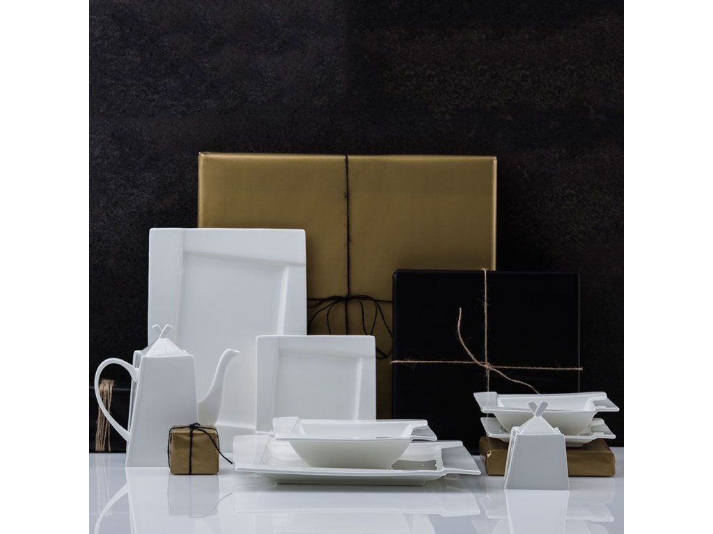 Kubiko - mramorově bílý porcelán s výrazným čtvercovým tvarem talířů. Speciální technologie výroby a dodatečný povlak činí hrany více zesílené a vyztužené, díky tomu je porcelán výjimečně odolný. Porcelán je ideální jak pro domácí použití tak pro profesionální gastronomii. Skvělý tip na svatební dar.