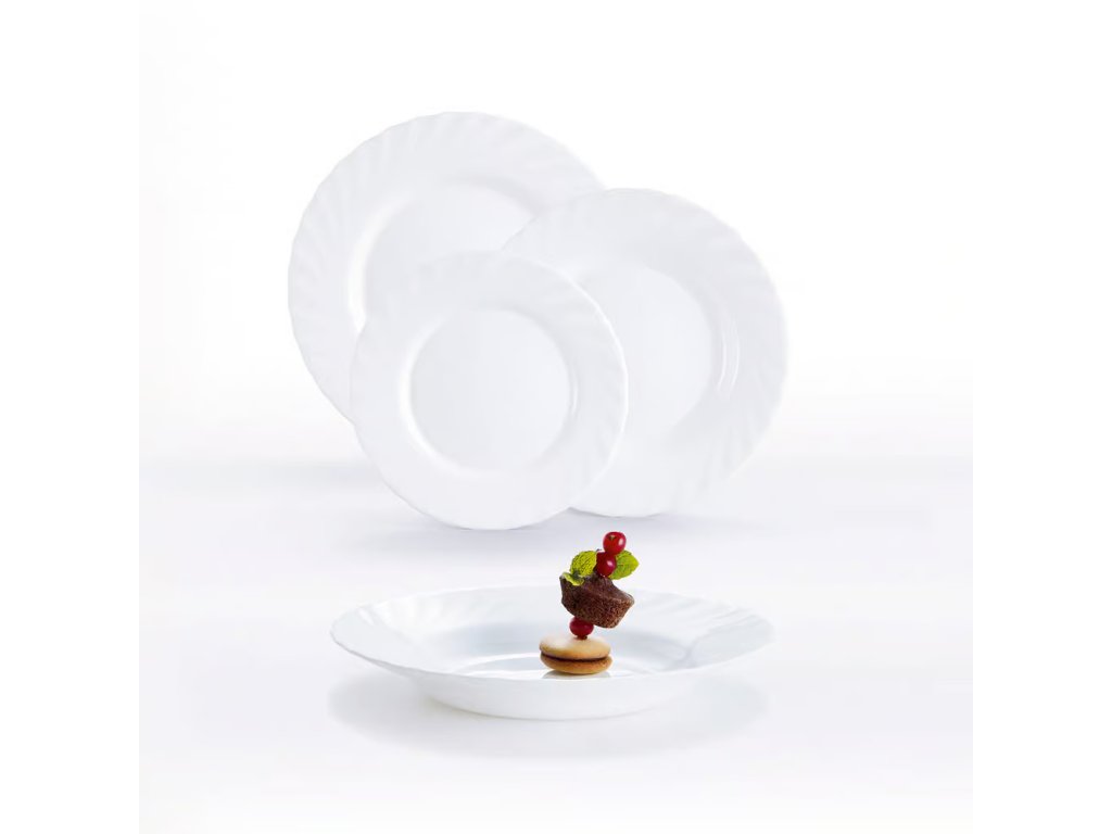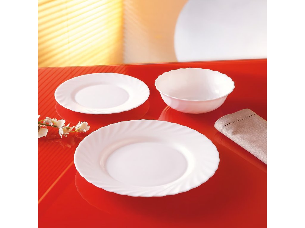 Trianon - klasika, nejoblíbenější řada nádobí vyrobená z bílého skla. Tvrzené sklo je speciálně tepelně upravené, s cílem zajistit lepší kvalitu, odolnost vůči nárazům a otřesům. Sklo je z neporézního materiálů, a proto nezadržuje žádné mikroorganismy, je 100% hygienické.