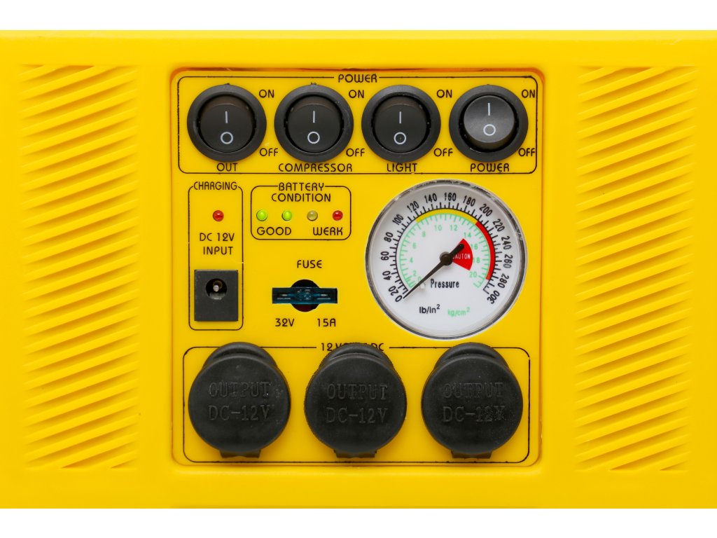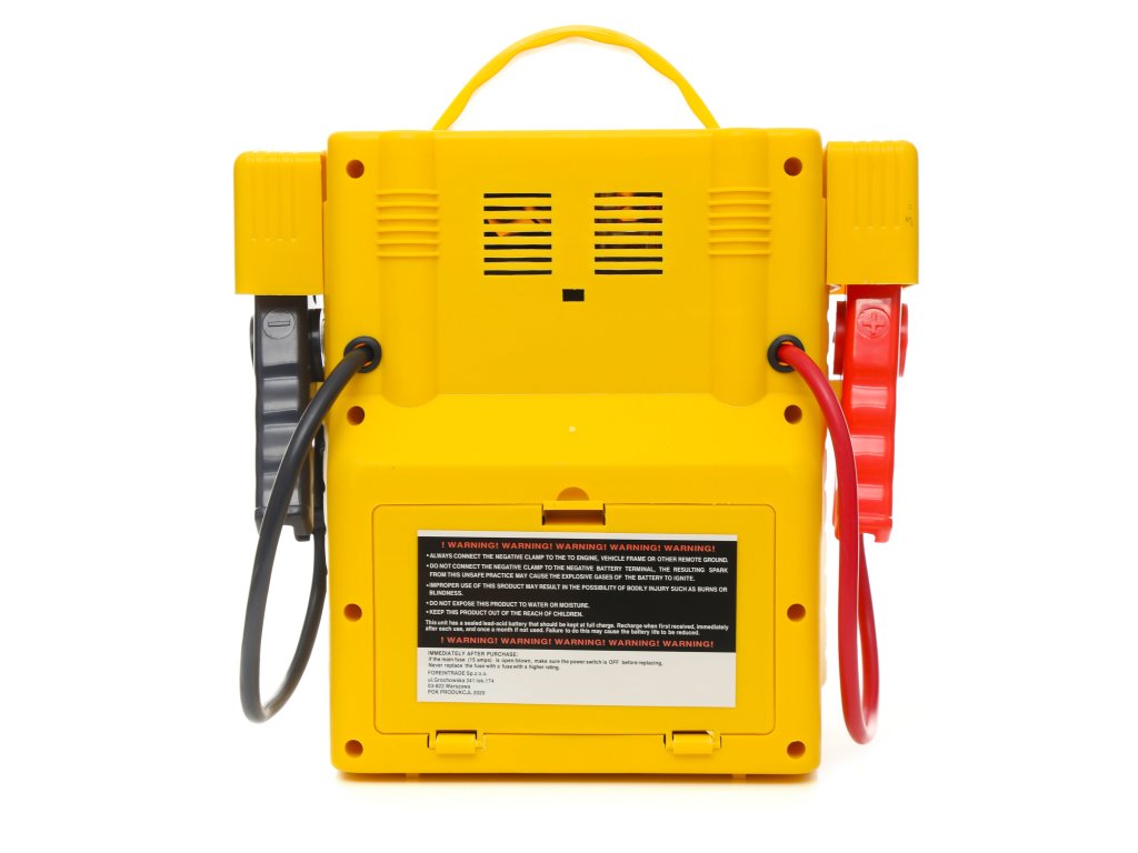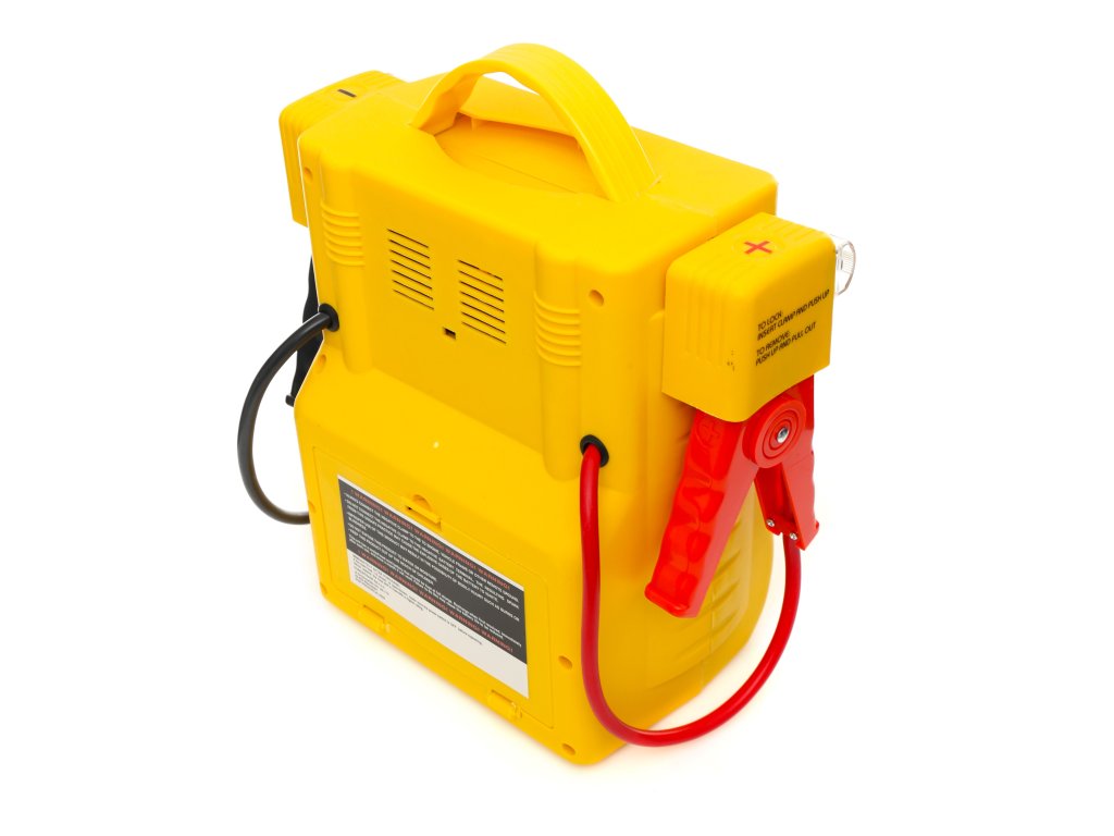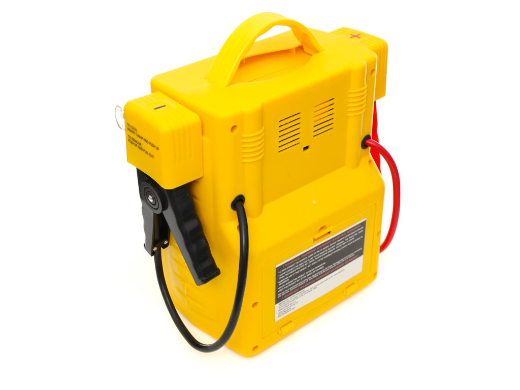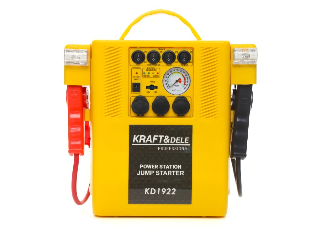 Multifunkční zařízení, které je užitečné v každé dílně i automobilu. Díky němu nastartujete auto, načtete telefon, osvítíte cestu a nafoukáte pneumatiky. Disponuje vestavěnými startovacími kabely o délce 50 cm a kompresorovým hadicem o délce 55 cm. Dále je vybaveno vestavěným testerem akumulátoru.