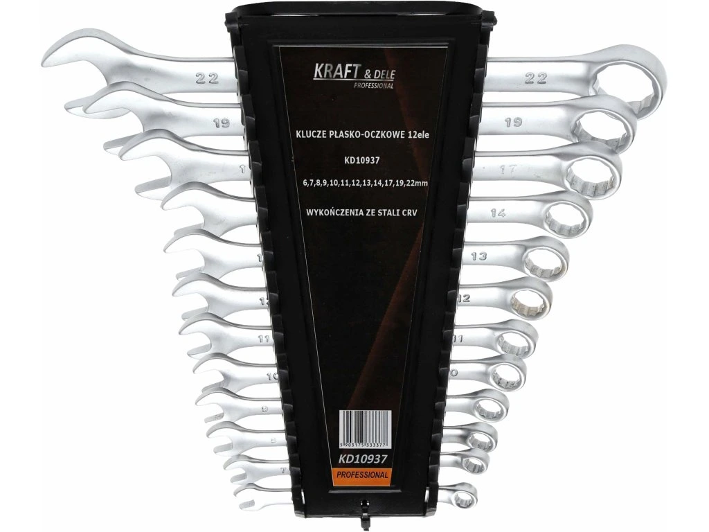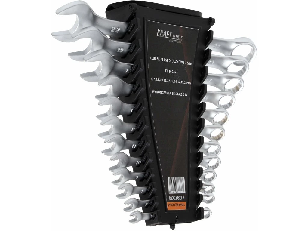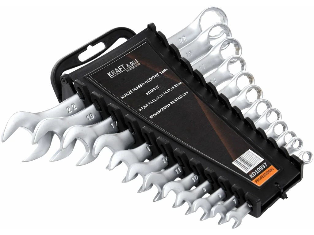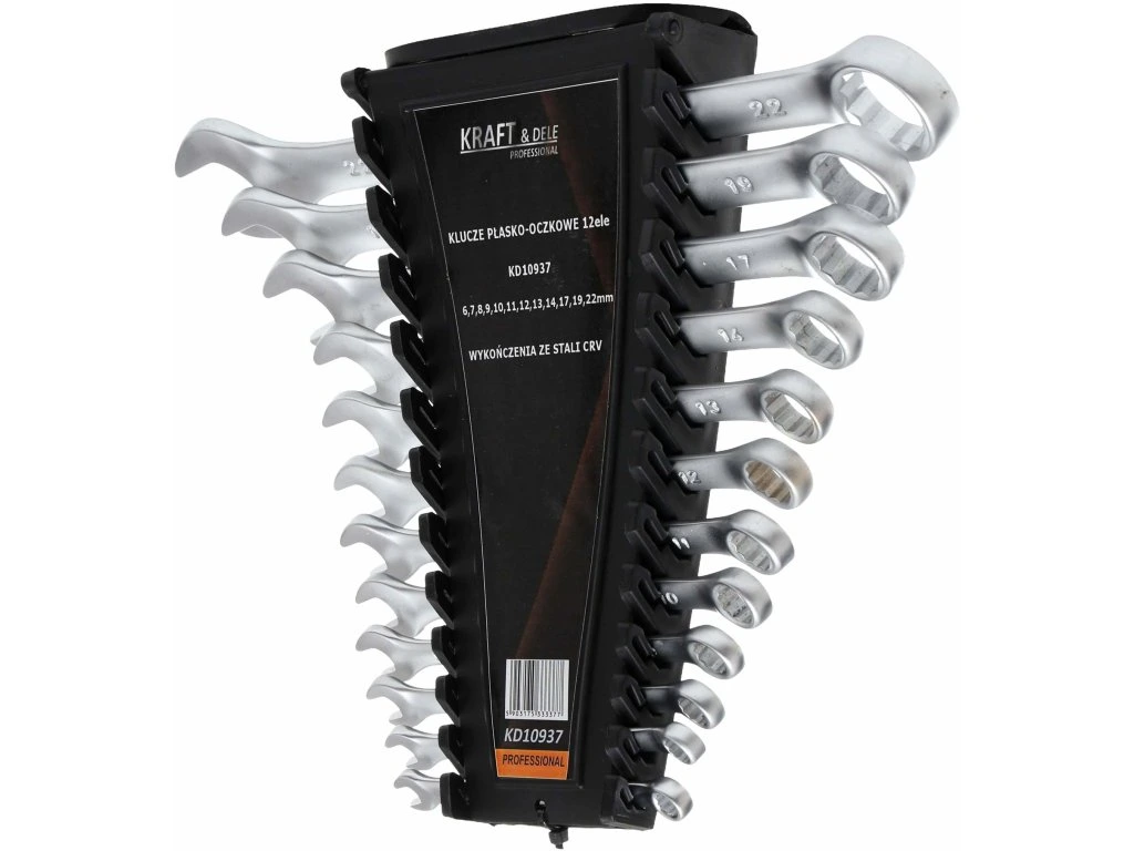 KD10937 to wysokiej jakości zestaw kluczy płasko-oczkowych marki KRAFT&DELE przeznaczony do prac serwisowych, montażowych oraz naprawczych. Komplet obejmuje 12 kluczy w popularnym zakresie rozmiarów od 6 do 22 mm, co pozwala na wygodną pracę zarówno w warsztacie, jak i w przydomowym garażu. Produkt wyposażony jest w organizer z tworzywa sztucznego, który pozwoli na posegregowanie kluczy.