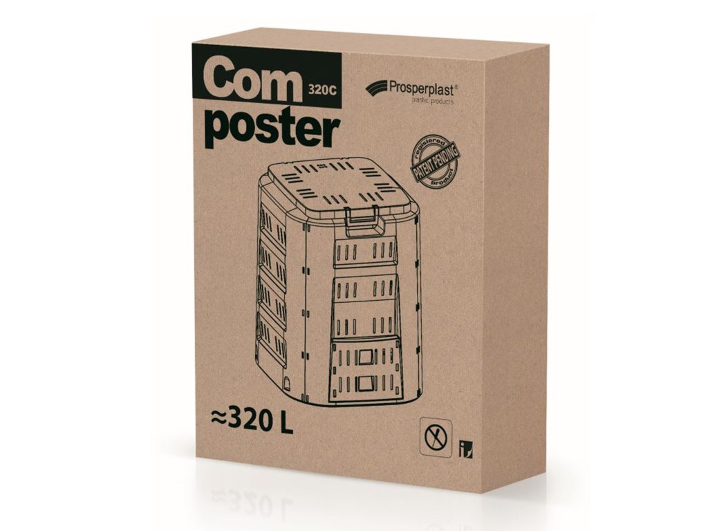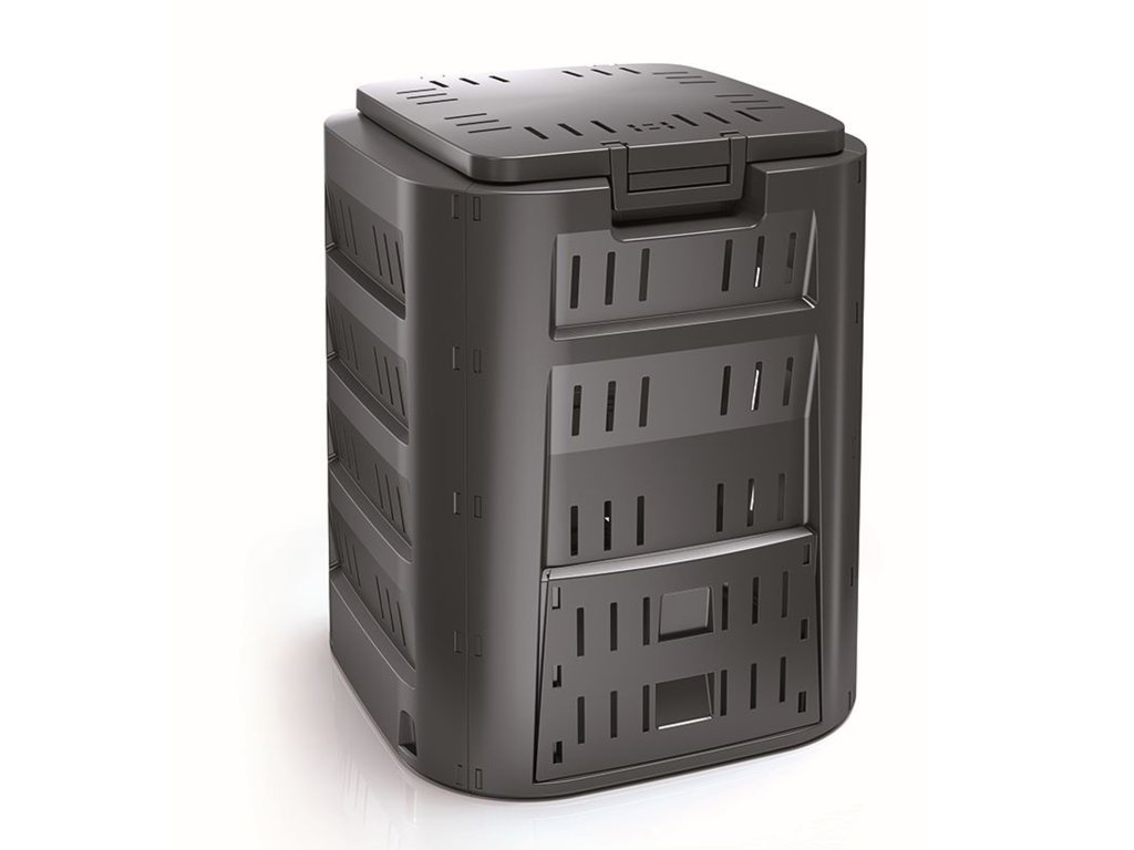 Kompostér je vyroben z materiálu odolného vůči mechanickému poškození, extrémním povětrnostním vlivům i vůči UV záření. Ergonomicky navržený kryt s rukojetí zajišťuje snadné použití a chrání před přístupem zvířat a či povětrnostních vlivů. Dvě západky umístěné ve spodní části kompostéru usnadňují vyjmutí hotového produktu. Neutrální barvy a jednoduché designové linie umožňují, aby dokonale zapadl do jakékoliv zahrady.