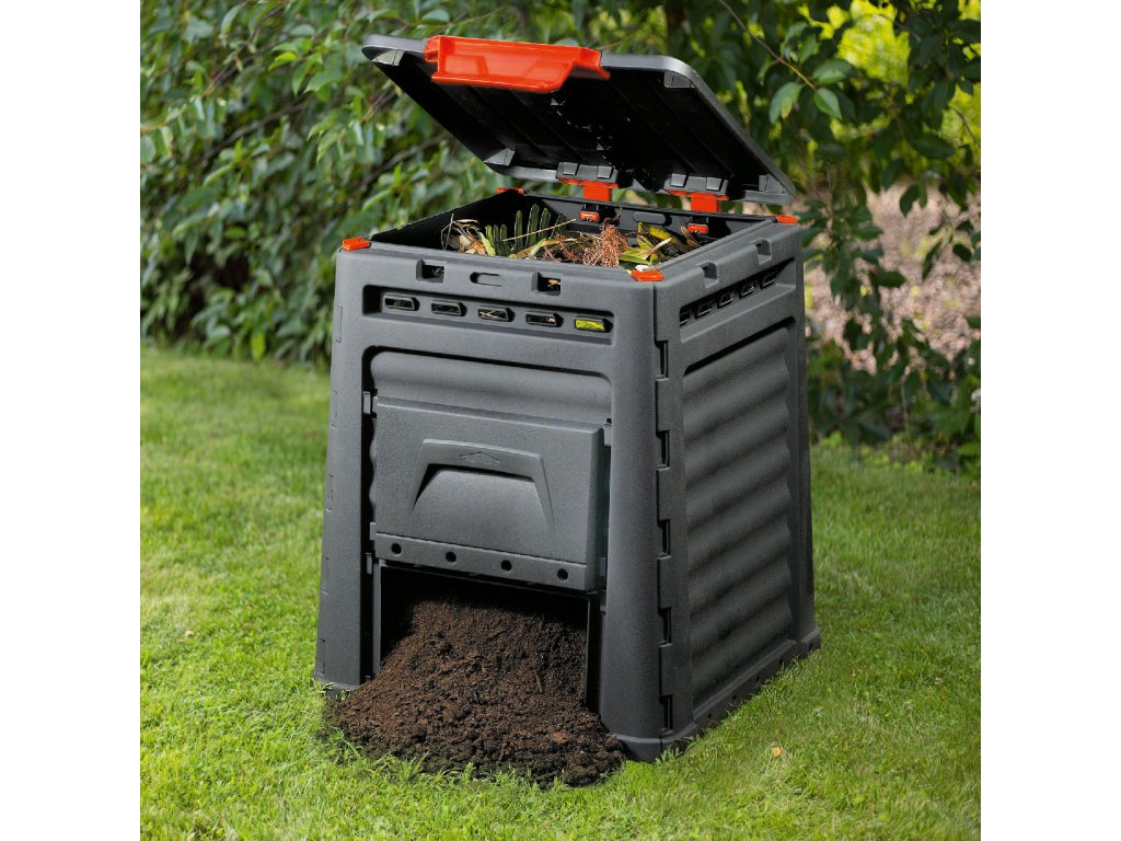 Kompostér Eco 320 l je ideálním řešením pro vlastní zpracování domácího odpadu. Konstrukce kontejneru je vybavena ventilačními otvory a dodatečným plnícím otvorem zabudovaným do klapky, díky kterému můžete přidat vodu. Kompostér má navíc funkční klapku, kterou lze shrabat listy, trávu nebo jiné produkty pro výrobu hnojiv. Kompostér se vyznačuje kapacitou a stabilitou. Trvanlivost a snadné čištění zajišťuje velmi kvalitní materiál.Technické parametry: