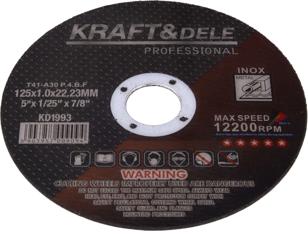 Klíčem k její vynikající odolnosti a dlouhé životnosti je abrazivní zrno z oxidu hlinitého, které je spojeno syntetickou pryskyřicí a zesíleno tkaninou ze skelných vláken. Tato kombinace zajišťuje nejen vysokou odolnost proti poškození, ale také maximální bezpečnost během používání. S tloušťkou pouhých 1,0 mm je tato řezná deska KD1993 perfektní volbou pro rychlé a mimořádně přesné řezání tenkých plechů, trubek a tenkostěnných ocelových profilů. Ocení ji každý, kdo klade důraz na čisté řezy, minimální ztráty materiálu a celkově vysokou kulturu práce.