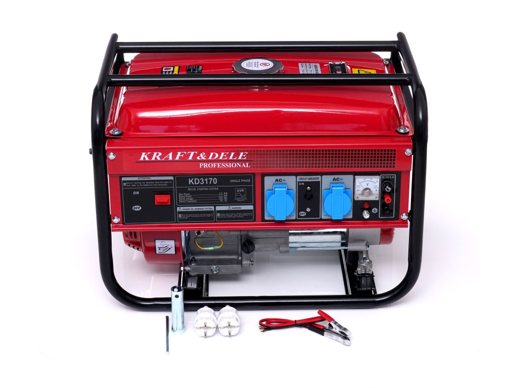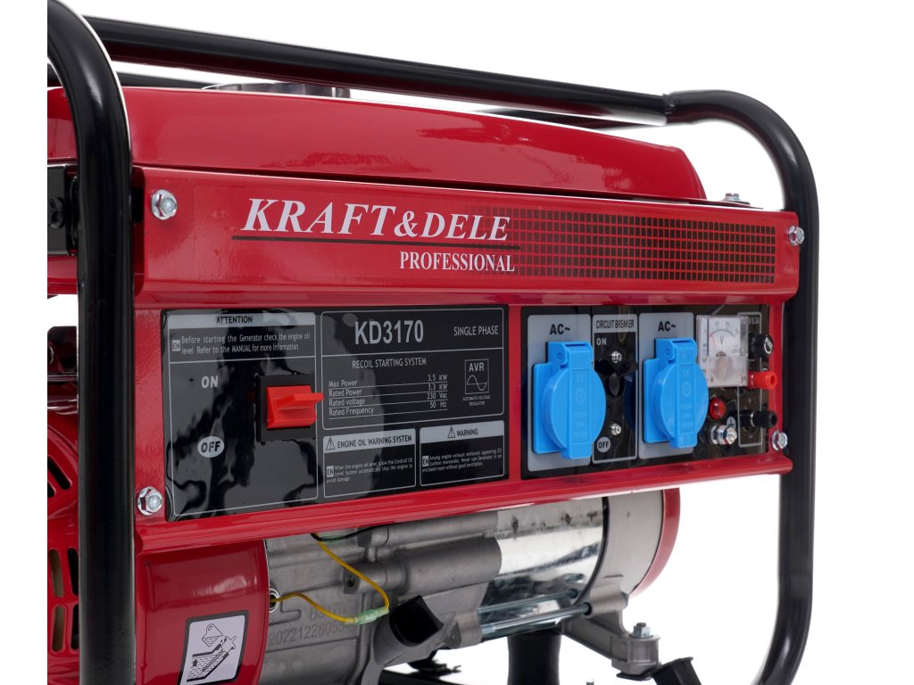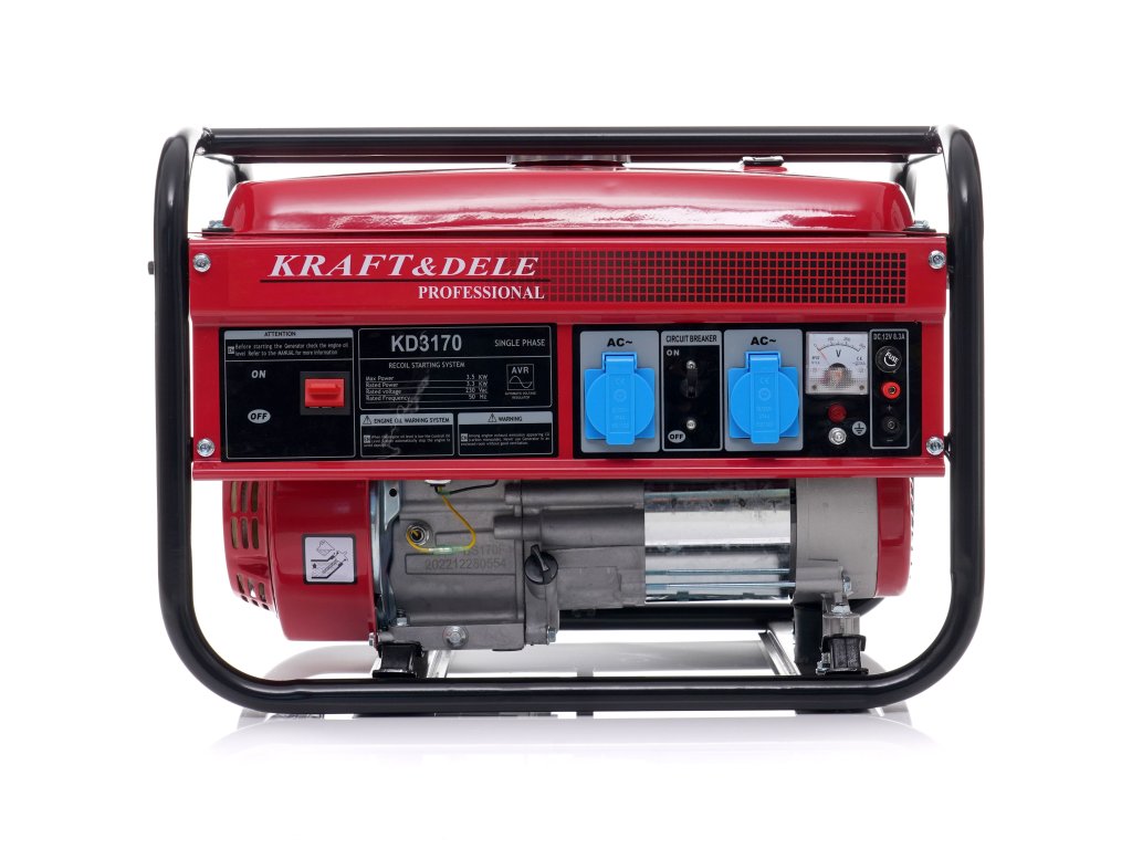 - Přenosná jednofázová elektrocentrála KD3170 značky Kraft&Dele je určena k výrobě střídavého proudu 230V pomocí 4taktního spalovacího motoru OHV.