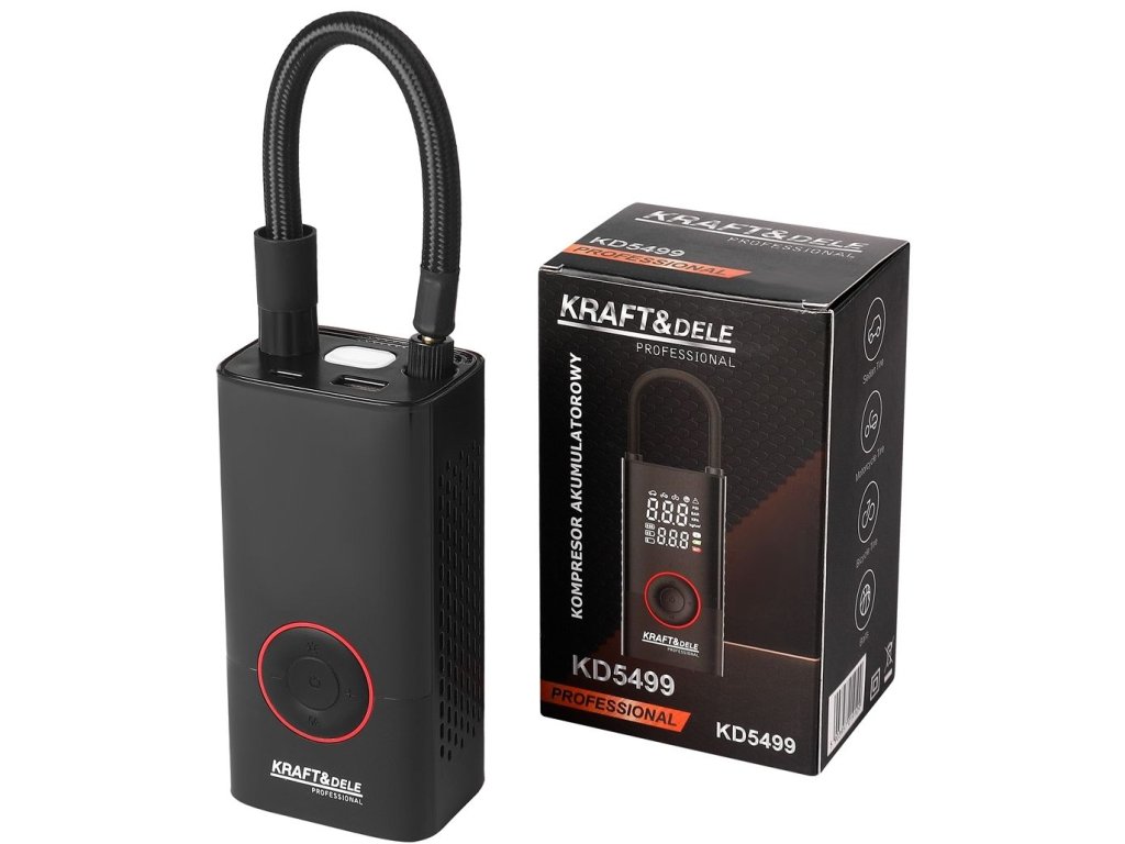 Zpříjemněte si každodenní úkoly a buďte vždy připraveni s moderním akumulátorovým kompresorem KD5499 od značky Kraft&Dele. Tento inovativní, přenosný pomocník je navržen pro rychlé a pohodlné nafukování pneumatik, míčů, matrací a dalších doplňků, ať už jste v dílně, na cestách, nebo kdekoli jinde.